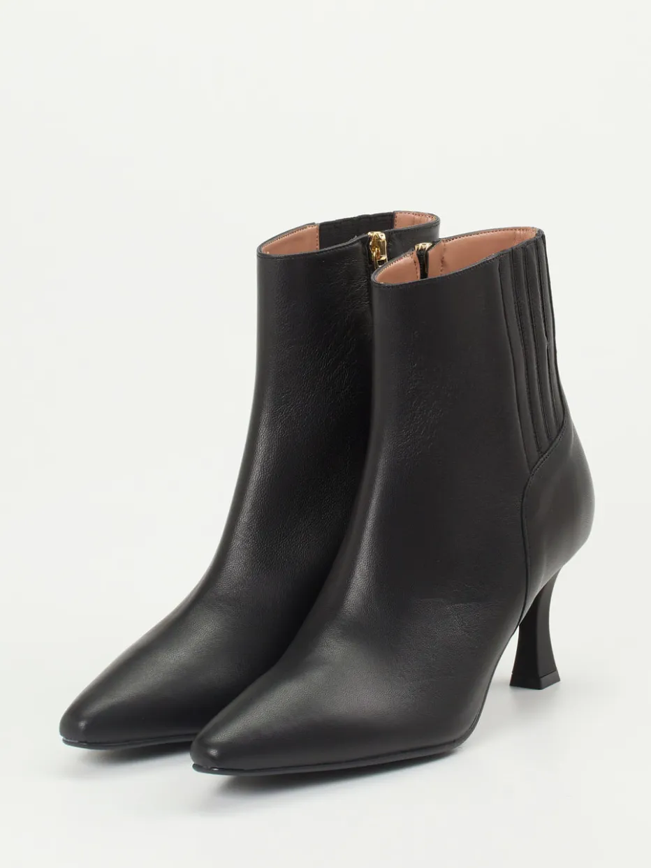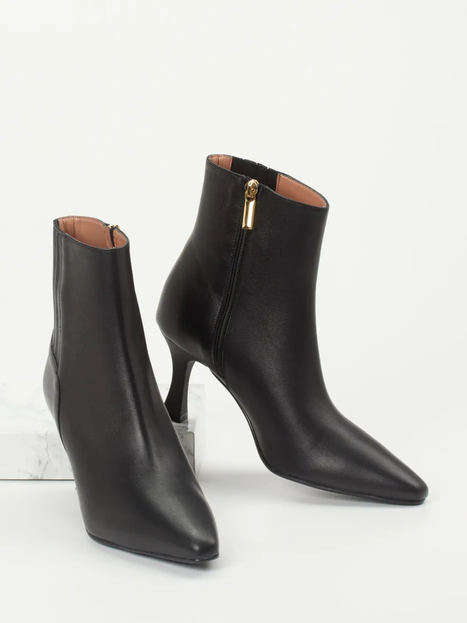 Ein Kitten-Heel in Vollendung: Diese Stiefelette vereint spitz zulaufende Formgebung mit seidig mattem Kalbleder für einen minimalistischen, eleganten Look.