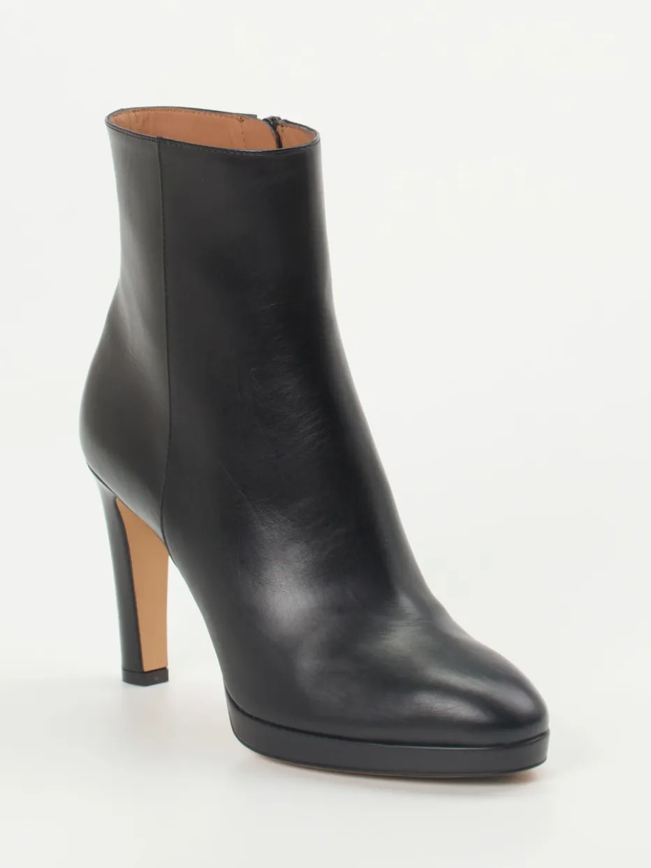 Die schmal geschnittene Silhouette und das schwarze, leicht glänzende Kalbleder vereinen klassische Eleganz mit modernem Purismus – perfekt für formelle Anlässe oder stilvolle Büro-Outfits.