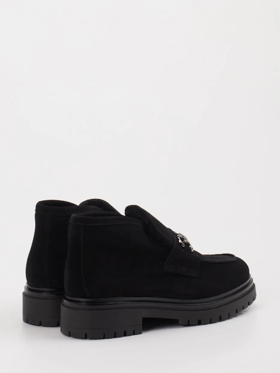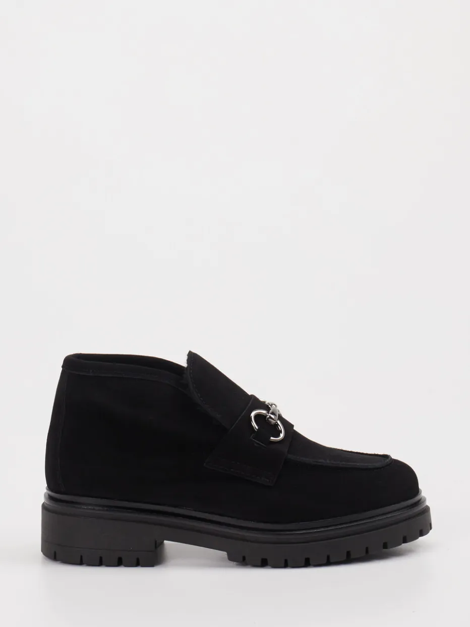 Veloursleder, silberfarbene Horsebit-Spange und eine markante Profilsohle vereinen minimalistischen Streetstyle mit funktionalem Herbstkomfort.