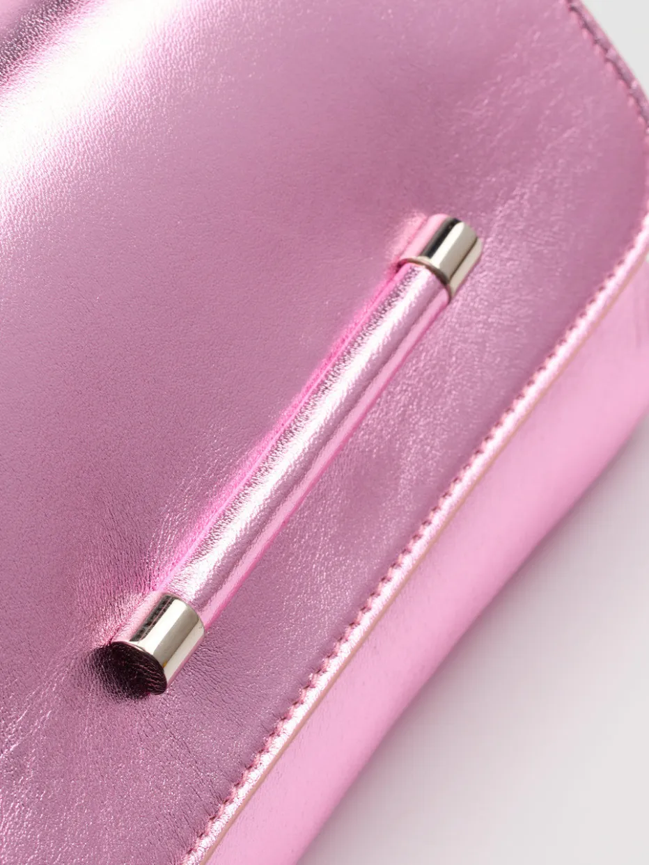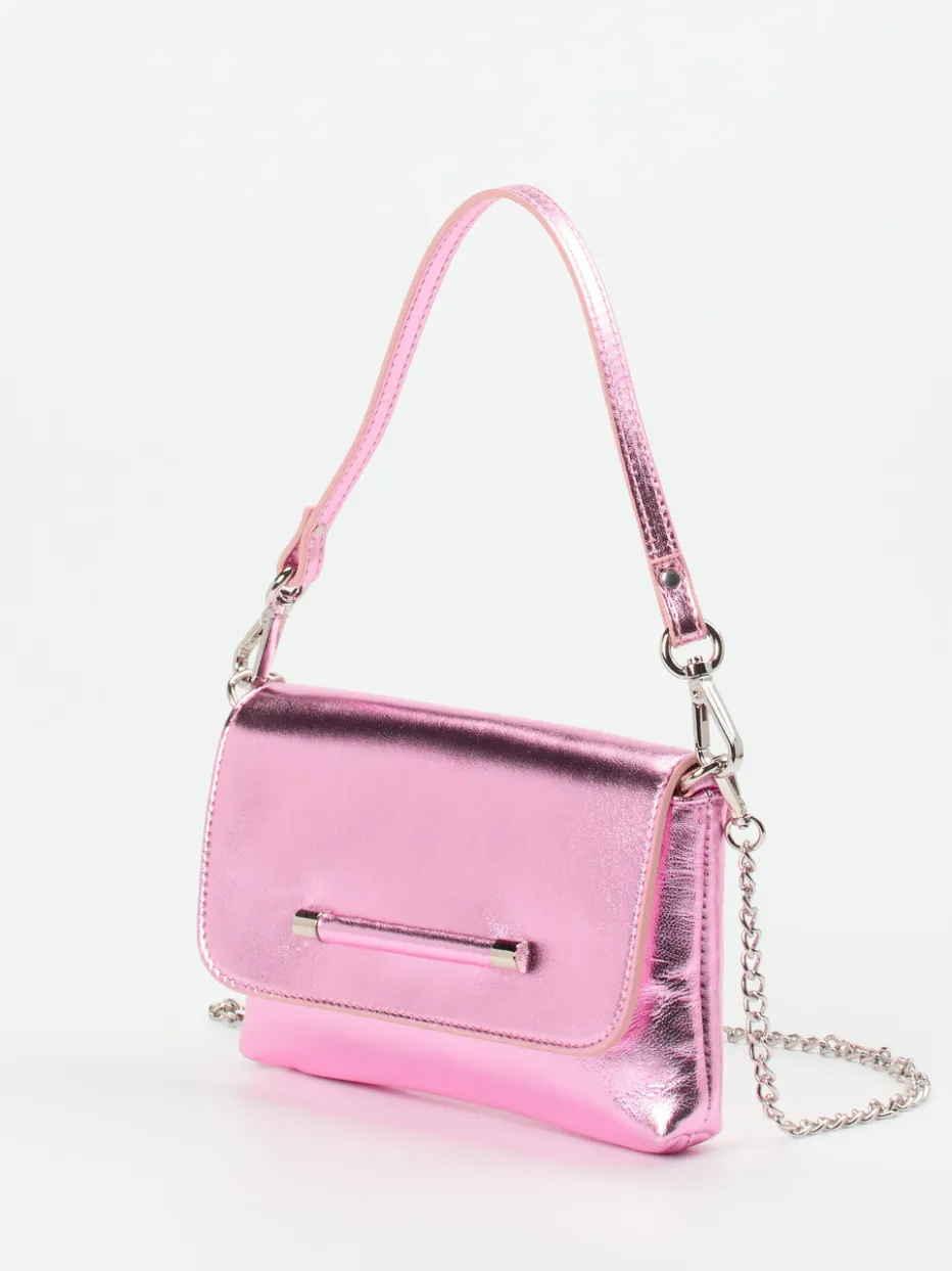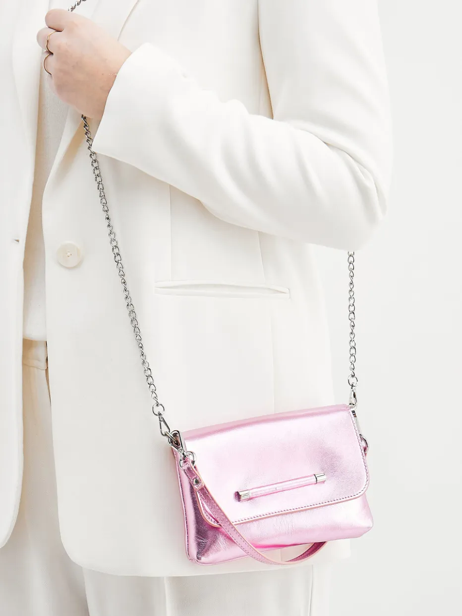 Mit glänzendem Metallicfinish und eleganter Kettenlösung vereint diese Schultertasche von Konstantin Starke modische Extravaganz mit klarer Linienführung.