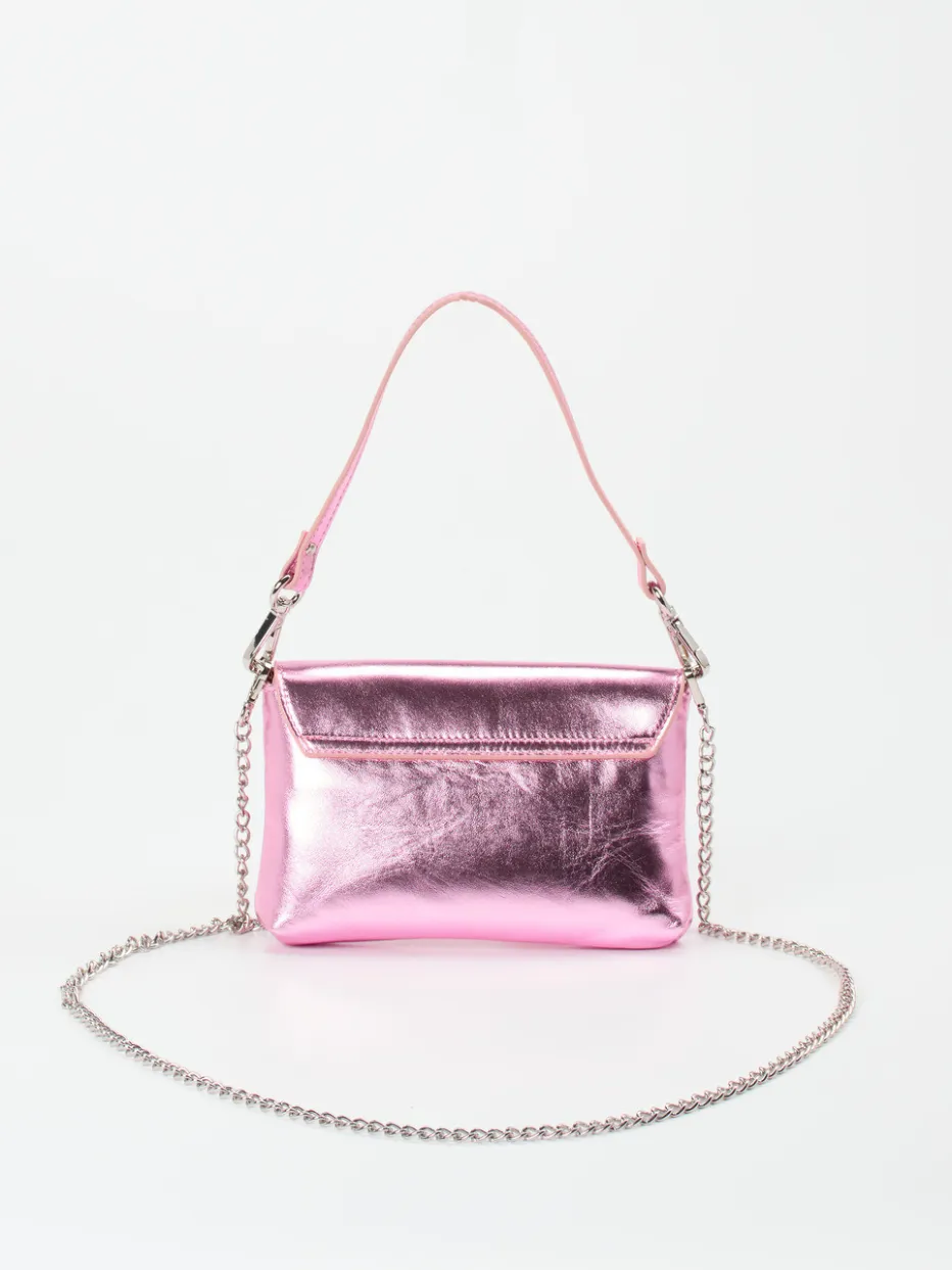 Zum Highlight jeder glamourösen Garderobe wird diese Umhängetasche der Marke Konstantin Starke. Das rosafarbene Metallicleder besticht im All-over-Look und lässt sich durch sein schlichtes Design perfekt kombinieren. Praktischerweise kann zwischen einem zierlichen Lederhenkel und einem Schulterriemen gewechselt werden, der als filigrane, silberfarbene Kette daherkommt und so den eleganten Anspruch der Tasche unterstreicht. Ganz unkompliziert öffnen und schließen lässt sich der dezente Magnetverschluss. Der Innenraum wartet mit genügend Raum für die wichtigsten Utensilien wie Portemonnaie, Handy und Lippenstift auf. Ein zeitloses Fashion-Statement, das für sich steht! – Obermaterial: Metallicleder – Futter: Textil – Farbe: rosa – Größe: ca. 12 x 19 x 4 cm (H x B x T) – Schulterriemen: ca. 120 cm – Verschluss: Magnetknopf