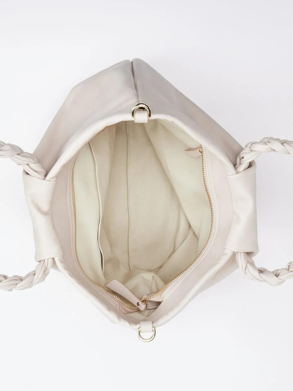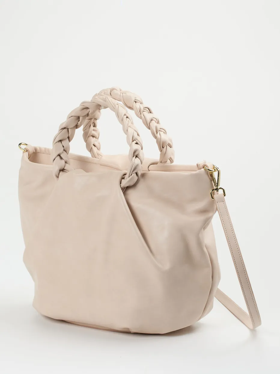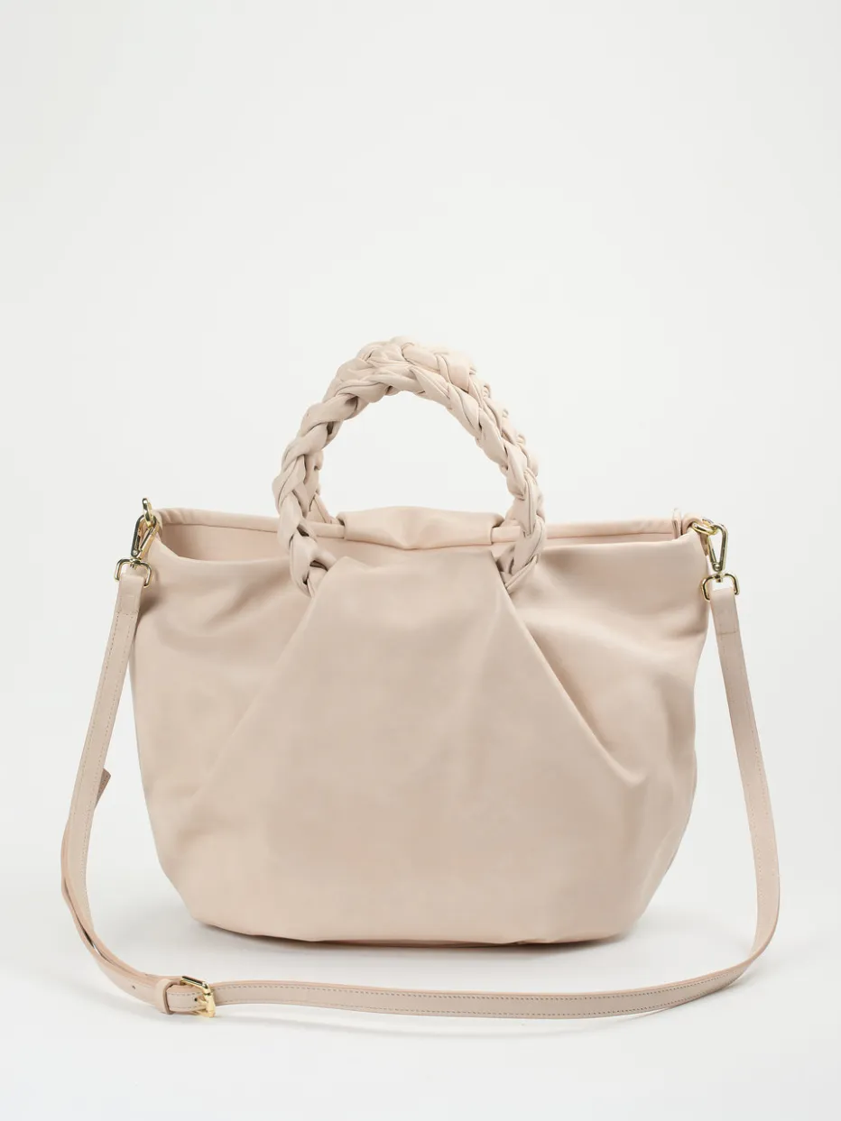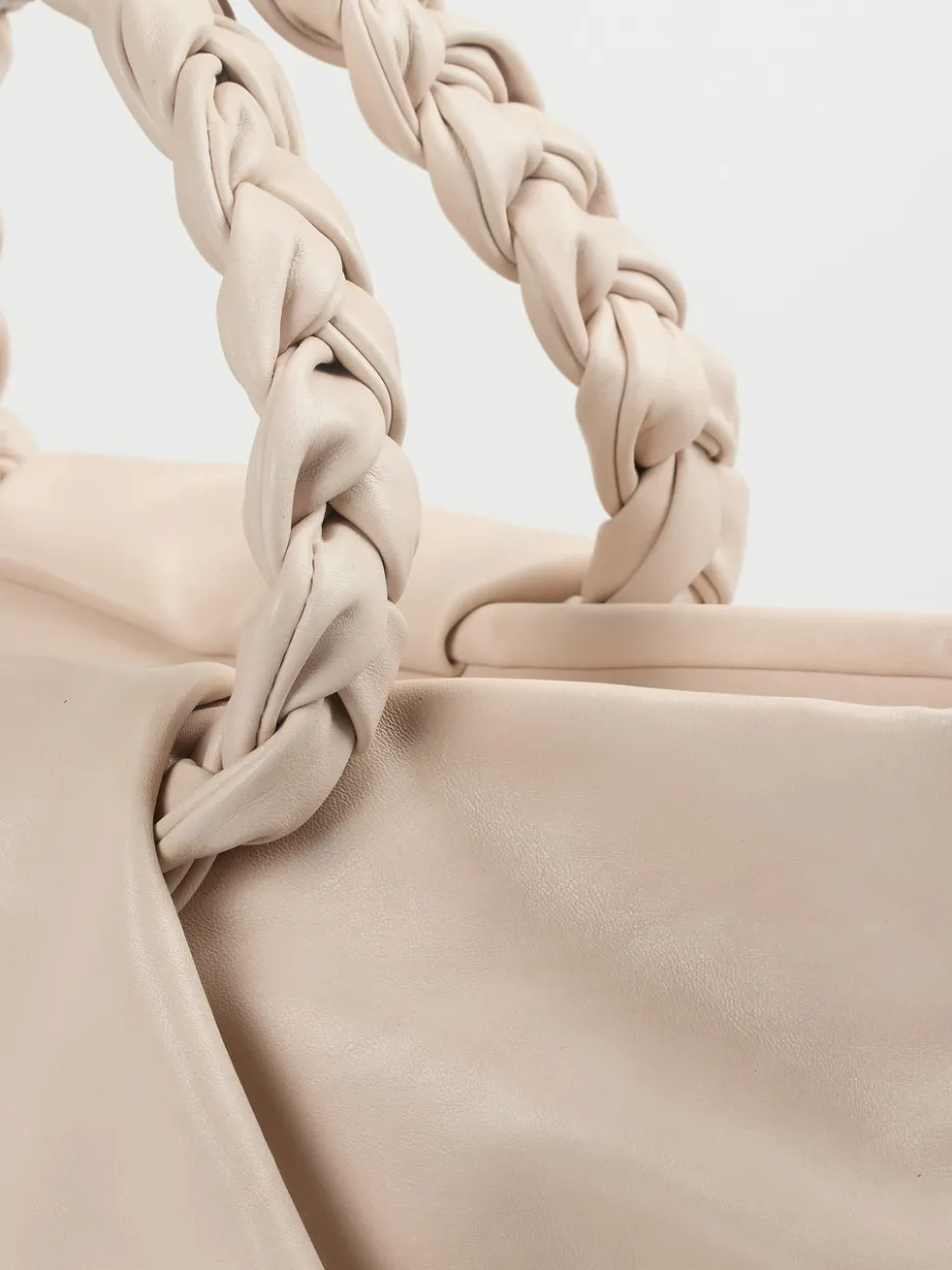 Weiches Kalbleder in zartem Rosé, kombiniert mit femininer Übersilhouette und geflochtenen Details – Konstantin Starke präsentiert eine Business-taugliche Tasche im Geist von Quiet Luxury.