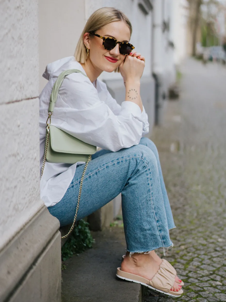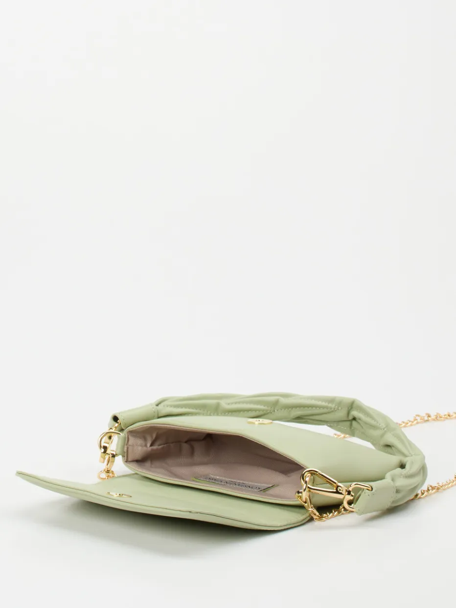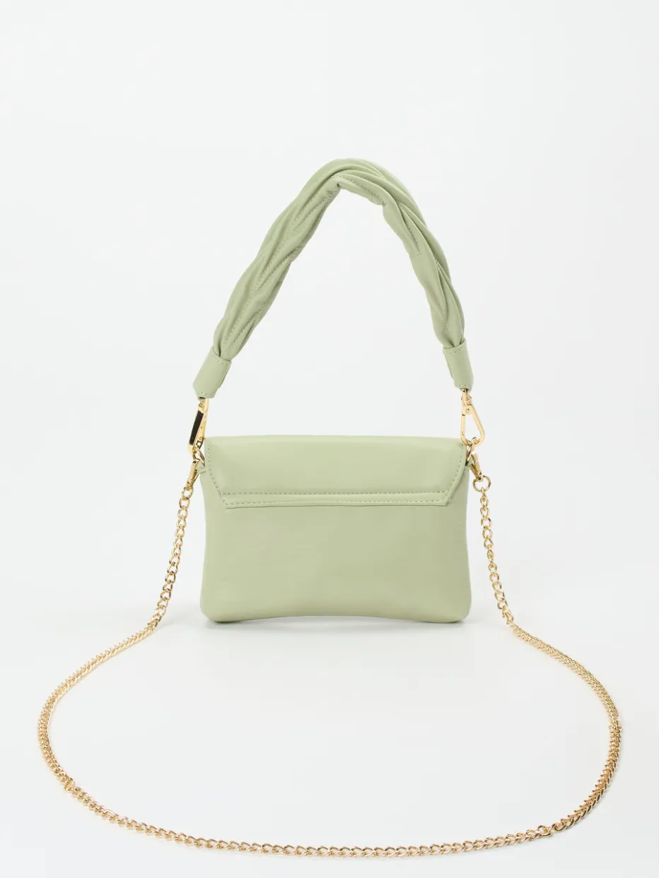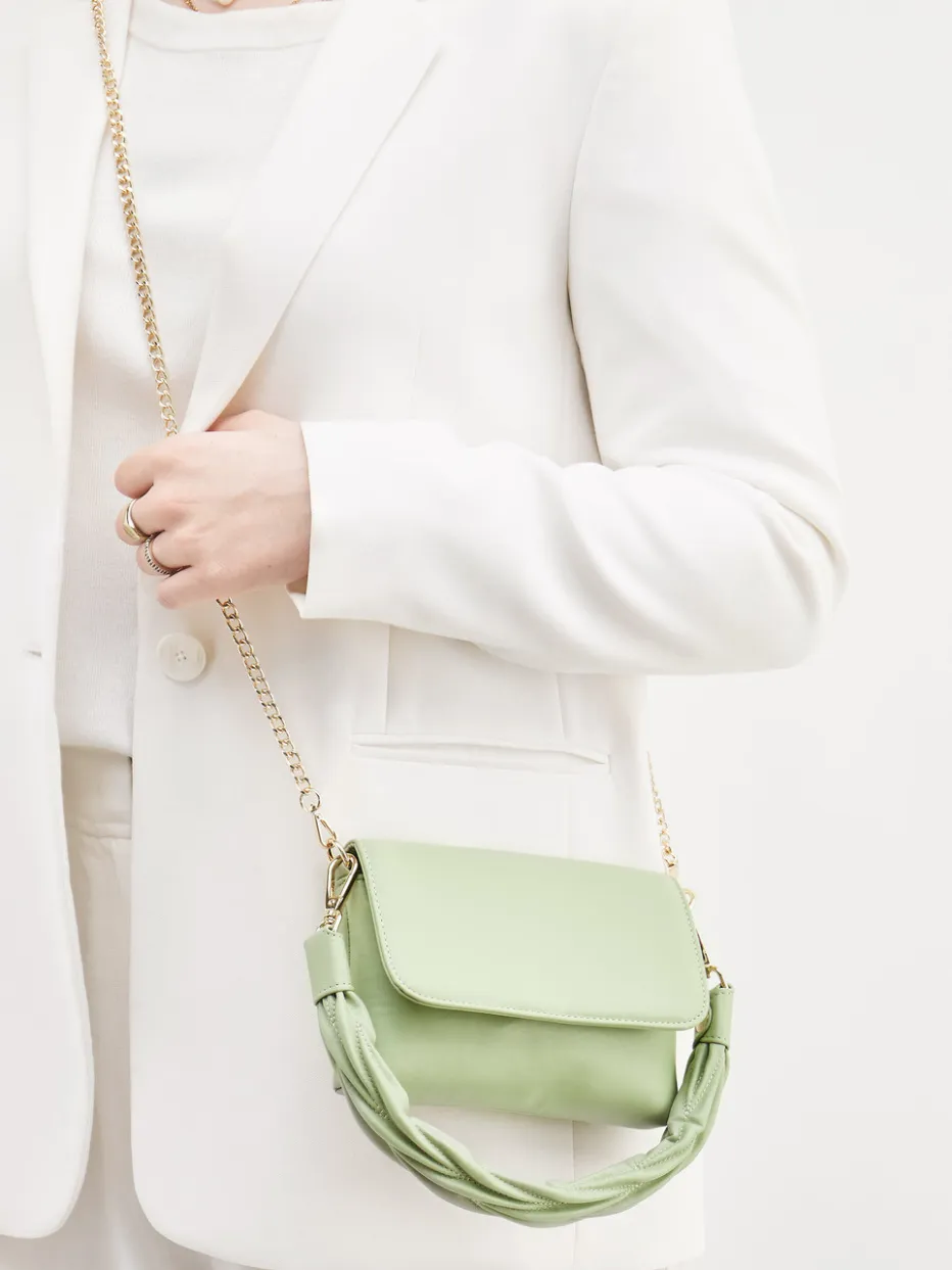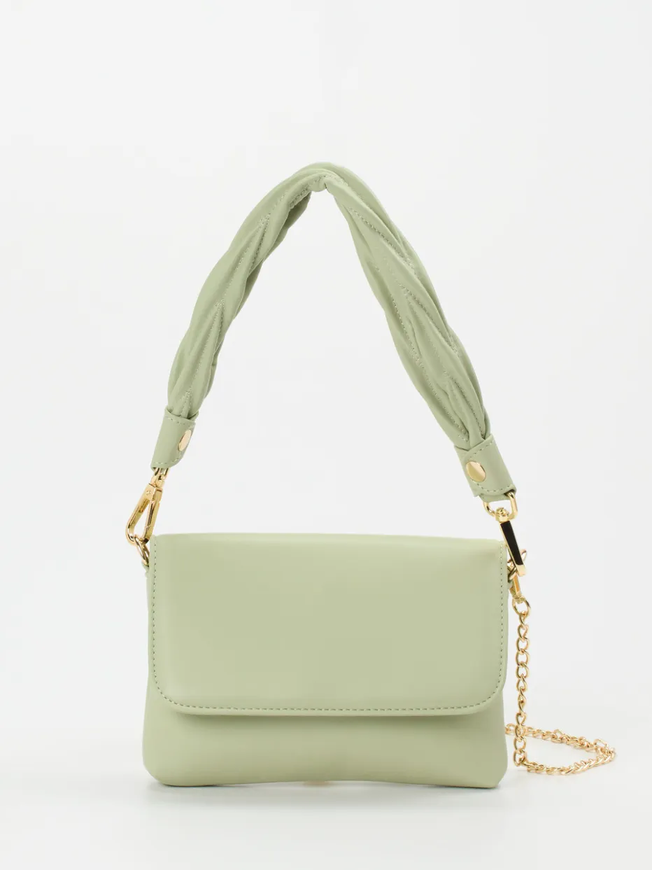 Die Schultertasche in zartem Salbeigrün vereint minimalistisches Design mit aktuellen Material- und Farbtendenzen der Saison. Ideal für stilbewusste Looks mit subtiler Eleganz.