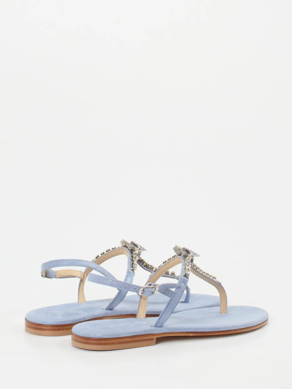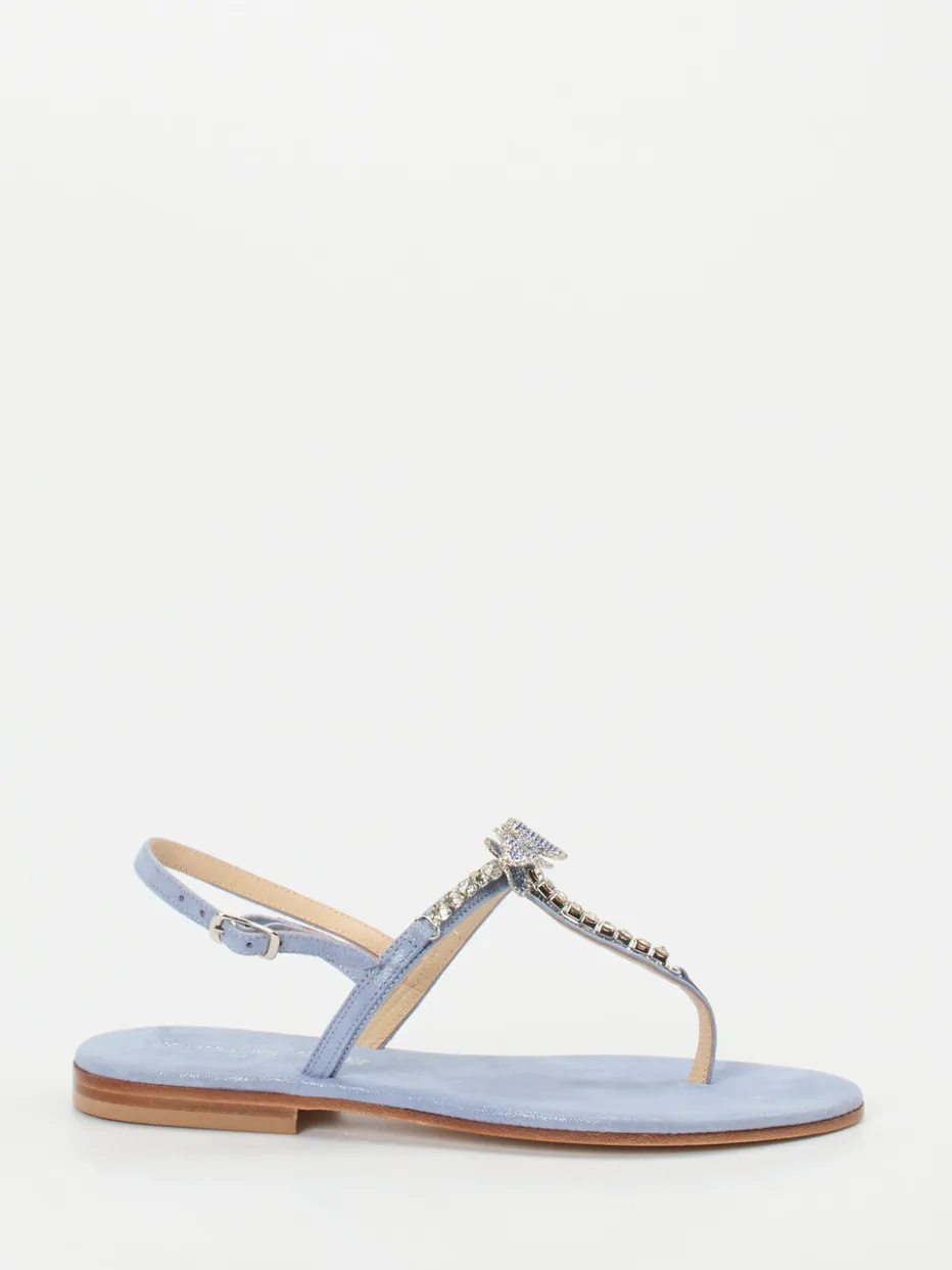 Die Kombination aus Metallicleder, Strasselementen und pastelliger Farbgebung verleiht dieser flachen Sandale ein modisches Update im Y2K-Look – ideal für sommerliche Anlässe mit Stilanspruch.