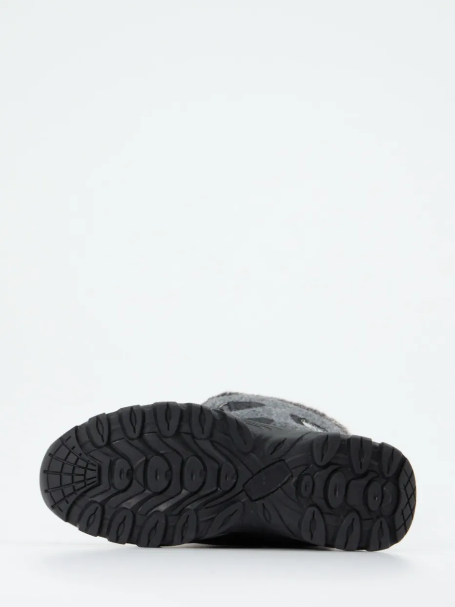 Ideal für frostige Ausflüge und winterliche Alltagssituationen schützt das wind- und wasserdichte Synthetikmaterial, unterstützt durch eine atmungsaktive L-Tex Membran, zuverlässig vor Nässe. Der schwarze Schuh mit matter Oberfläche, reflektierenden Nähten und Metallösen wirkt markant und funktional zugleich. Kunstfellfutter sichert angenehme Wärme, während ein praktisches Duo aus Reißverschluss und Schnürung ein leichtes Anziehen ermöglicht. Die profilierte Gummisohle liefert stabilen Halt auf rutschigem Untergrund – perfekt für die Trends GORPcore und Winter Layering.
