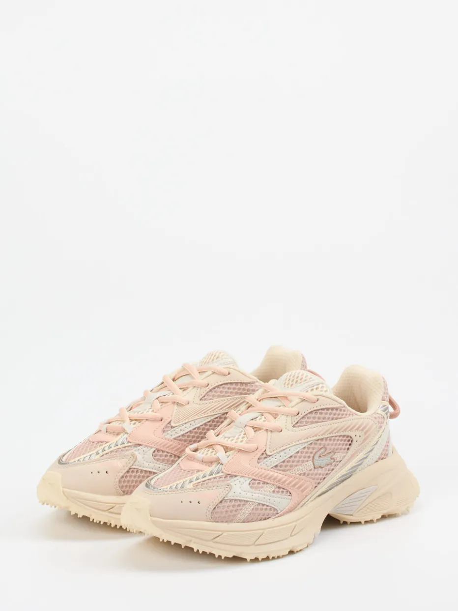 Chunky trifft Pastell – markant & feminin.Der Damen-Sneaker von Lacoste kombiniert Freizeitästhetik mit angesagtem Streetstyle. Ideal für trendorientierte Looks im Alltag bietet der Schuh atmungsaktives Textil in Verbindung mit luftigem Mesh, unterstützt von tonalem Velours-Overlay. Die dominante Farbe Rosa trifft auf Nuancen in Cremebeige und Hellgrau. Reflektierende Elemente und eine geschwungene, stark profilierte Gummisohle im Chunky-Stil prägen die Silhouette. Das charakteristische Krokodil-Logo rundet das Design ab. Perfekt zu pastellfarbenen Sportsocken oder urbanen Athleisure-Outfits. Ein Fashion-Statement mit sportlichem Komfort und stilistischer Klarheit à la Lacoste.