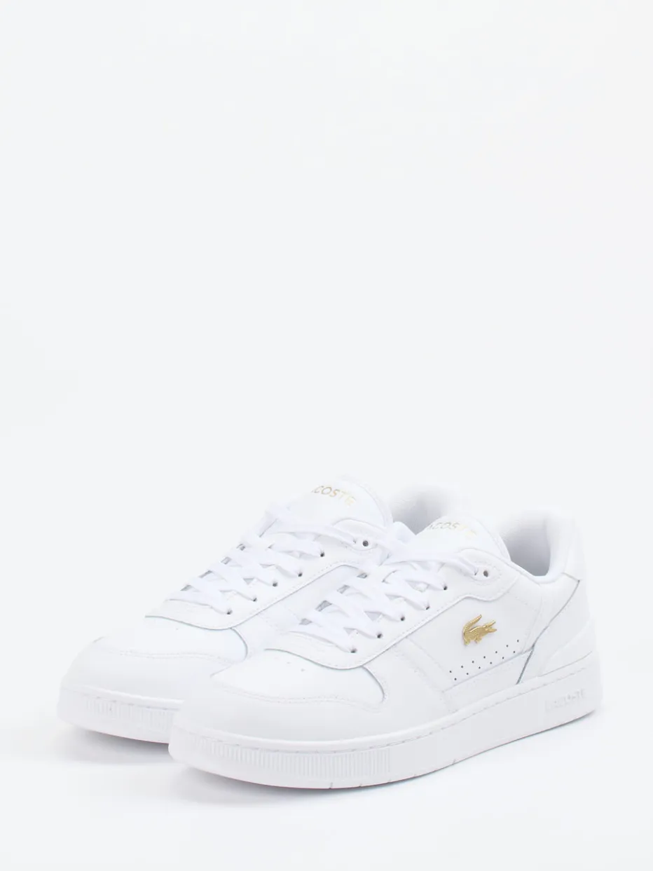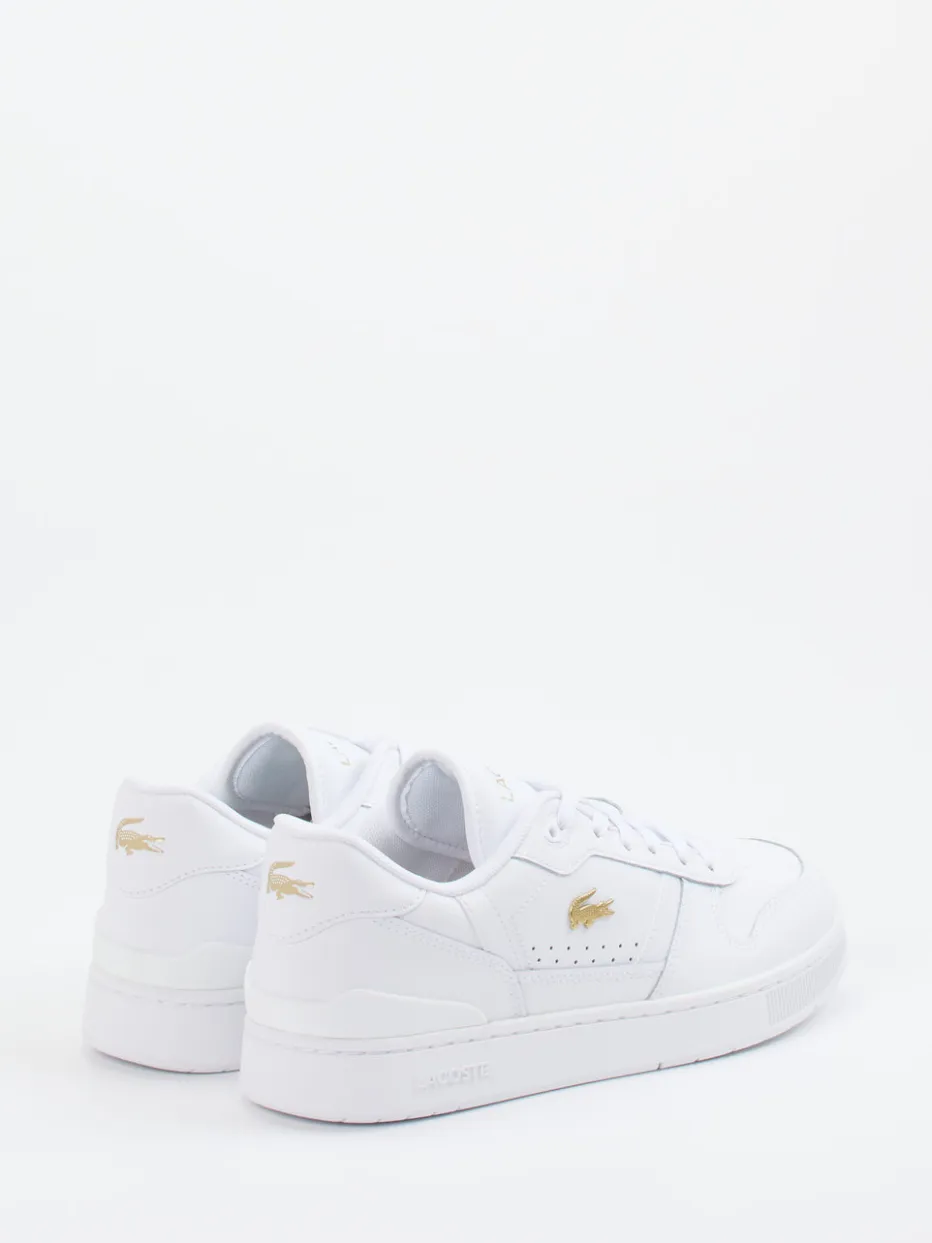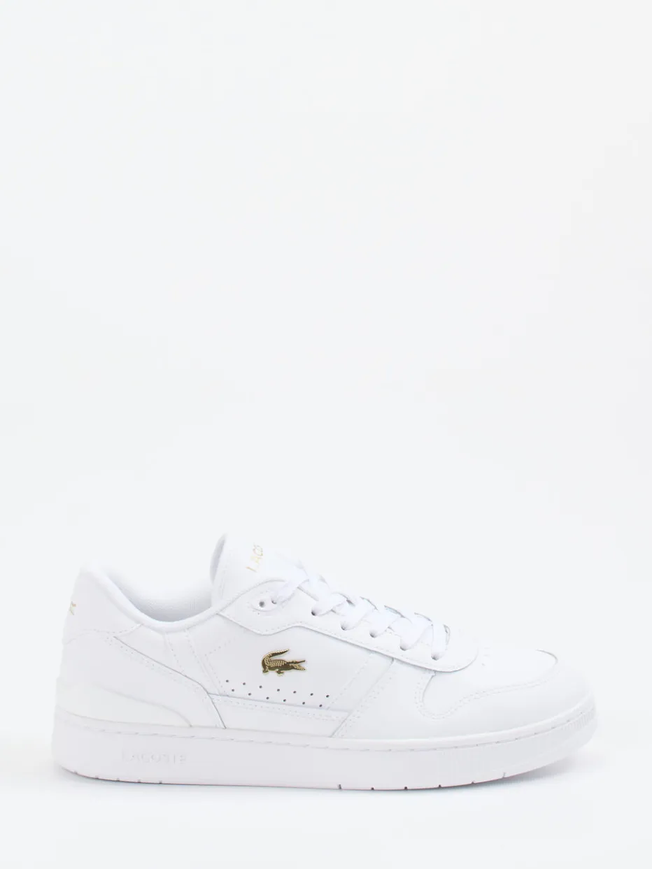 Minimalismus trifft auf goldene Raffinesse.Lacoste präsentiert einen eleganten Low-Top-Sneaker für Damen aus fein verarbeitetem Glattleder in strahlendem Weiß. Ob im Büro oder casual unterwegs – die klassische Form, Perforationen und goldfarbene Logo-Applikationen verleihen diesem Modell eine stilvoll cleane Ausstrahlung. Die glänzende Oberfläche und die weiße Gummisohle bieten ein komfortables Tragegefühl bei gleichzeitig urbaner Frische. Die Kombination aus sportlicher Silhouette und dezenten Metallic-Akzenten spiegelt aktuelle Streetwear-Trends wider. Lässt sich exzellent mit minimalistischen Outfits und weißen Socken kombinieren. Ein Sneaker mit sportlich-elegantem Charme – markentypisch reduziert und trendbewusst.