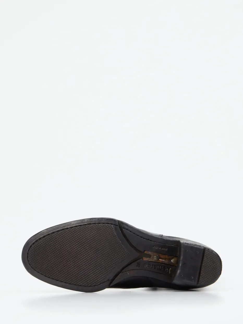 Schlicht und wirkungsvoll.Lemargo präsentiert mit dieser Damen-Stiefelette ein elegantes Statement im Chelsea-Stil. In Situationen mit gehobenem Casual-Anspruch – ob im Büro oder beim Stadtbummel – überzeugt dieses Modell durch edles, glänzendes Büffelleder und eine schmale, knöchelhohe Form. Schwarze Elastikeinsätze an den Seiten und der silberfarbene Reißverschluss an der Ferse setzen dezente Akzente bei gleichzeitig hoher Alltagstauglichkeit. Die Gummisohle mit 5 cm Blockabsatz sorgt für sicheren Auftritt. Optisch fügt sich der Look in aktuelle „Quiet Luxury“-Strömungen ein und passt besonders zu klaren Linien im Styling. Lemargo steht für anspruchsvolle Handarbeit mit zurückhaltender Raffinesse.
