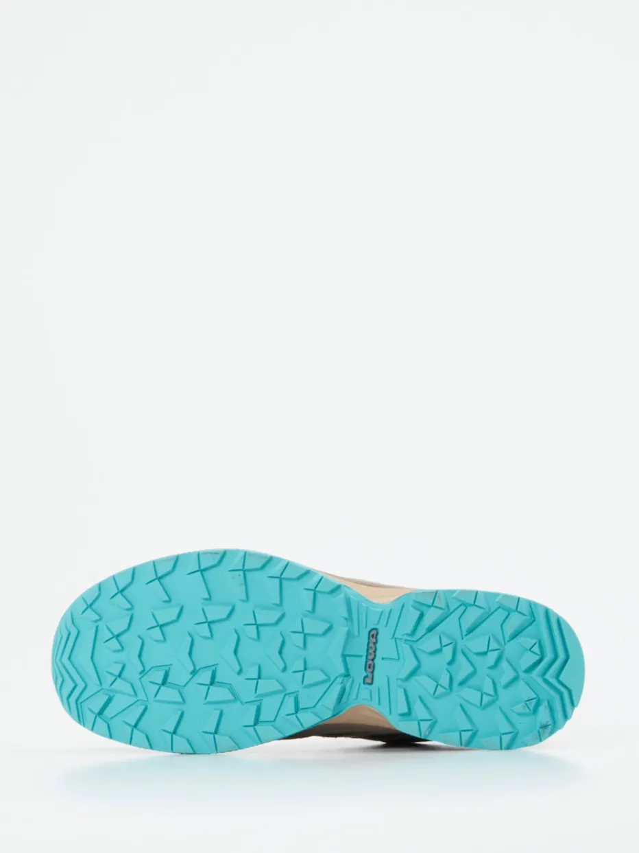 Für Wege, die Abwechslung verlangen.Lowa präsentiert einen vielseitigen Trailrunning-Schnürschuh für sportliche Unternehmungen und den urbanen Alltag. Ob Waldpfad oder Innenstadt – der wind- und wasserdichte Schnürschuh mit atmungsaktivem Textilmesh und GORE-TEX-Membran ist ein funktionaler Begleiter. Die sportlich-dynamische Silhouette in Sandbeige erhält durch türkise Details und gelbe Schnürsenkel einen frischen Color-Pop-Effekt. Mit Zuglasche, verstärkter Ferse und griffig profilierter Gummisohle ausgestattet, bietet er sicheren Halt auf wechselnden Untergründen. Der Schuh überzeugt trendbewusst im Gorpcore-Stil und trifft Komfortfans wie Streetstyle-Liebhaber. Maximale Funktion für anspruchsvolle Aktivitäten – mit dem Komforttypischen Anspruch von Lowa.