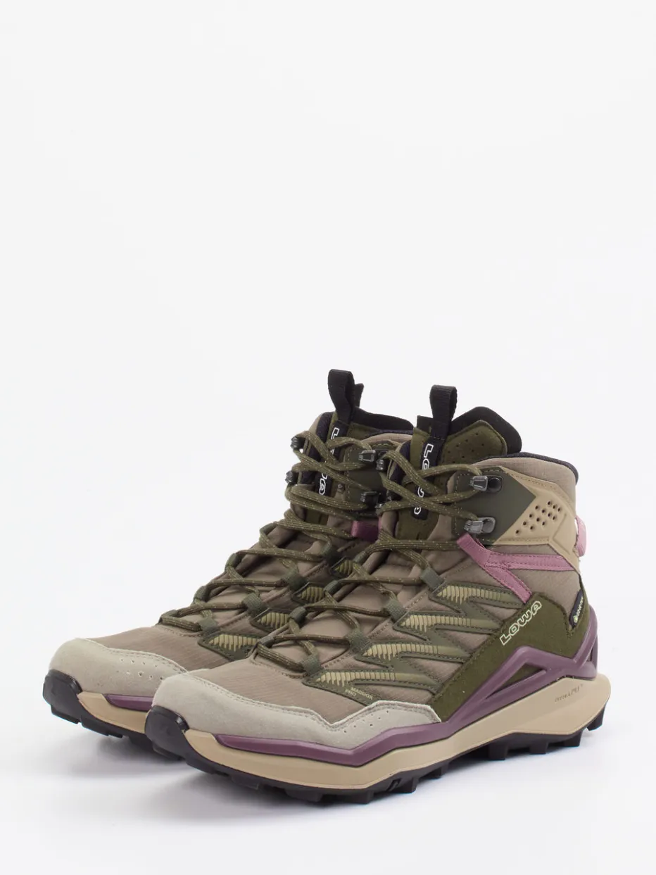 Für Touren bei jedem Wetter.Lowa präsentiert diesen technisch ausgereiften Outdoorschuh in Mid-Cut-Ausführung. Ob spontane Tagestouren oder ausgedehnte Wanderungen – die wind- und wasserdichte GORE-TEX®-Ausstattung schützt zuverlässig vor Nässe. Der Materialmix aus Textil und Synthetik zeigt sich in mattem Beige mit olivgrünen Akzenten sowie altrosafarbenen Details. Eine stark profilierte Gummisohle sorgt für optimalen Grip, während die funktional geformte Silhouette mit Zuglasche sowie zweifarbiger Schnürung den Look komplettiert. Stilistisch passend zu aktuellen Trends wie „Gorpcore“ oder „Muted Nature Tones“. Lowa steht für verlässliche Performance bei vielseitigen Outdoor-Einsätzen.