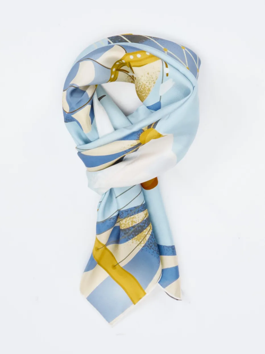 Das glänzende Seidentuch von Lua Accessories kombiniert nostalgisches Design mit moderner Eleganz – ein stilvolles Accessoire für sommerliche Akzente.