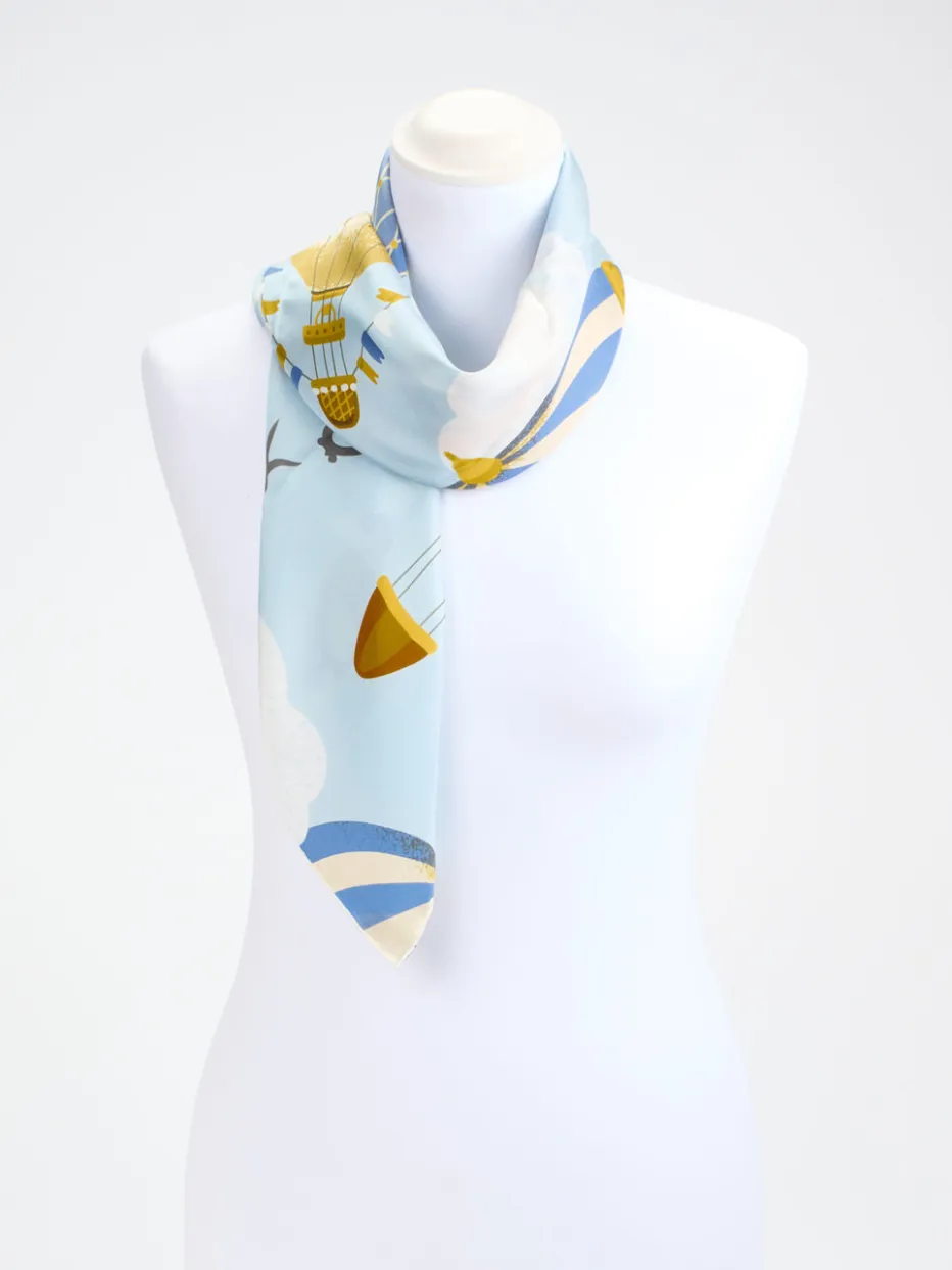 Weil Ihr Stil es verdient: dieses Tuch der Marke Lua Accessoires darf man sich gern mal selbst zum Geschenk machen! Ob gediegen um den Hals geschlungen, retromäßig als Kopftuch bei der Cabrio-Tour oder lässig in den Zopf oder an den Henkel der Handtasche geflochten – das quadratische It-Piece erweist sich als wahres Kombinationswunder. Seine außerordentlich handschmeichelnde Haptik erhält es durch feinste Seide, knitterfrei und eines der hochwertigsten Textil- Materialien überhaupt. Gerade an warmen Sommertagen wirkt sie auf der Haut federleicht und angenehm kühlend. Und sie lässt die verwendeten Farben umso kraftvoller hervortreten: auf der Grundlage von luftigem Himmelblau entfalten sich detailverliebte Motive von historischen Heißluftballons. Farbe: Blau/ Weiß/ Gelb Material: 100% Seide Maße: 90 x 90 cm Pflegehinweis: nur chemische Reinigung