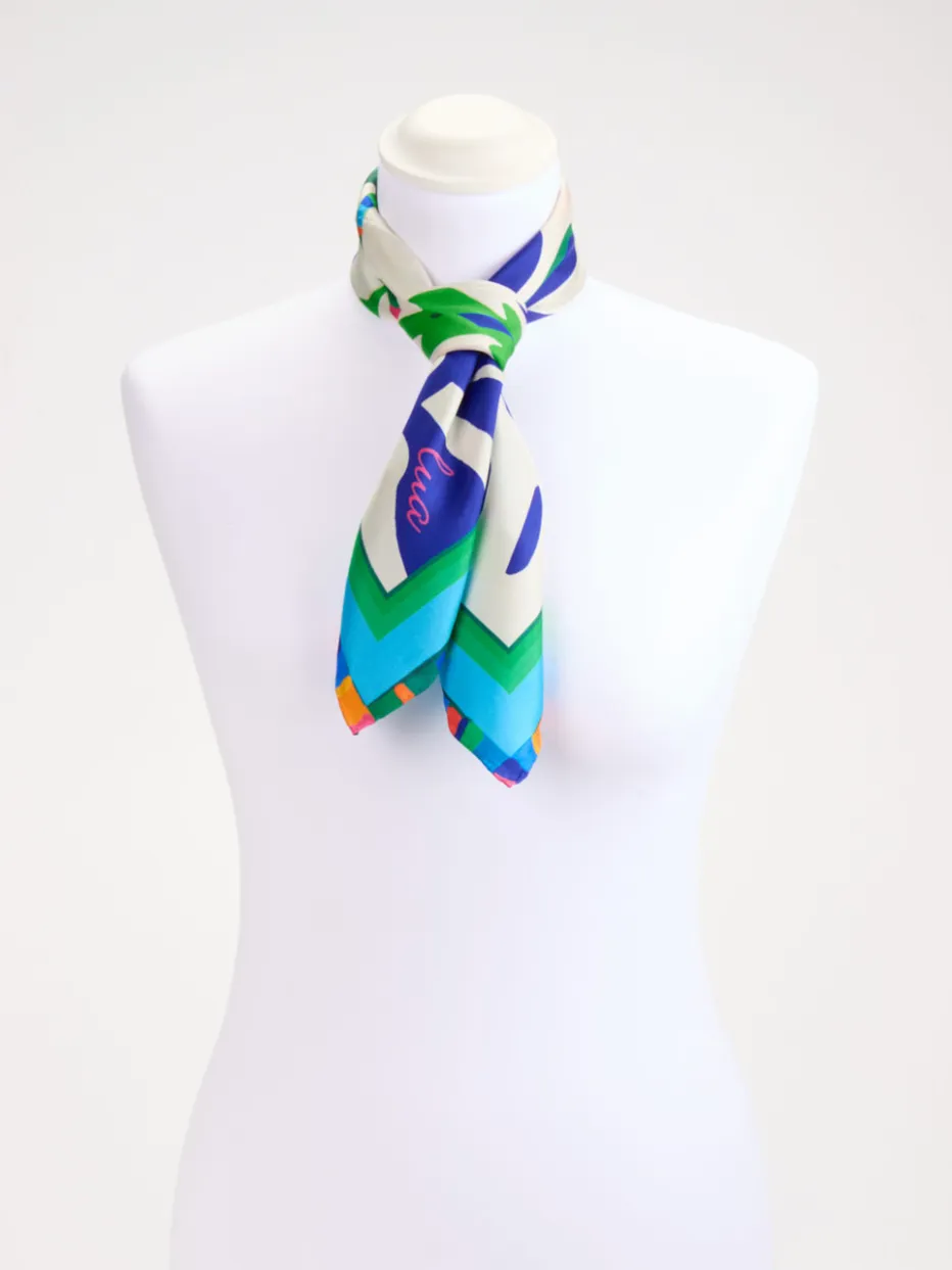 Die seidig-glänzende Oberfläche und der kraftvolle Grafikprint machen dieses Tuch von Lua Accessories zum stilvollen Sommer-Akzent für Hals, Haar oder Tasche.
