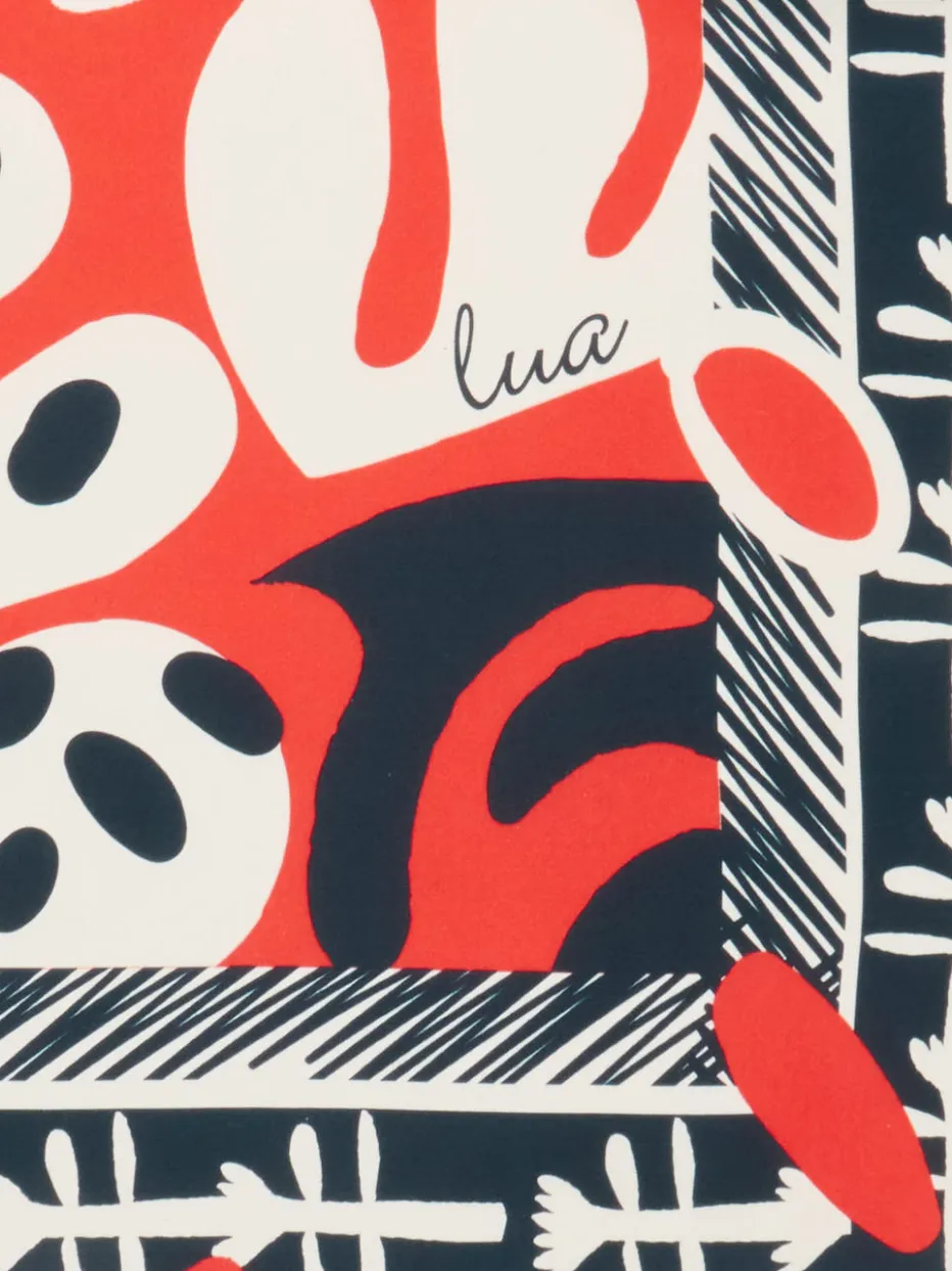 Das quadratische Tuch von Lua Accessories begeistert mit luxuriösem Glanz, einem Signatur-Grafikprint und kunstvoller Rollsaumverarbeitung. Ein stilvolles Accessoire für moderne Klassikerinnen.