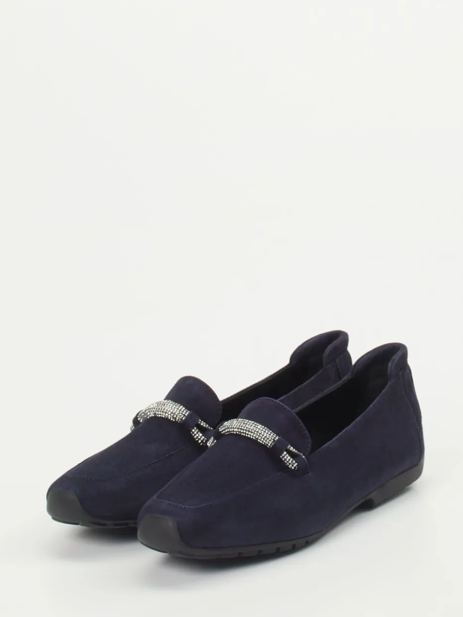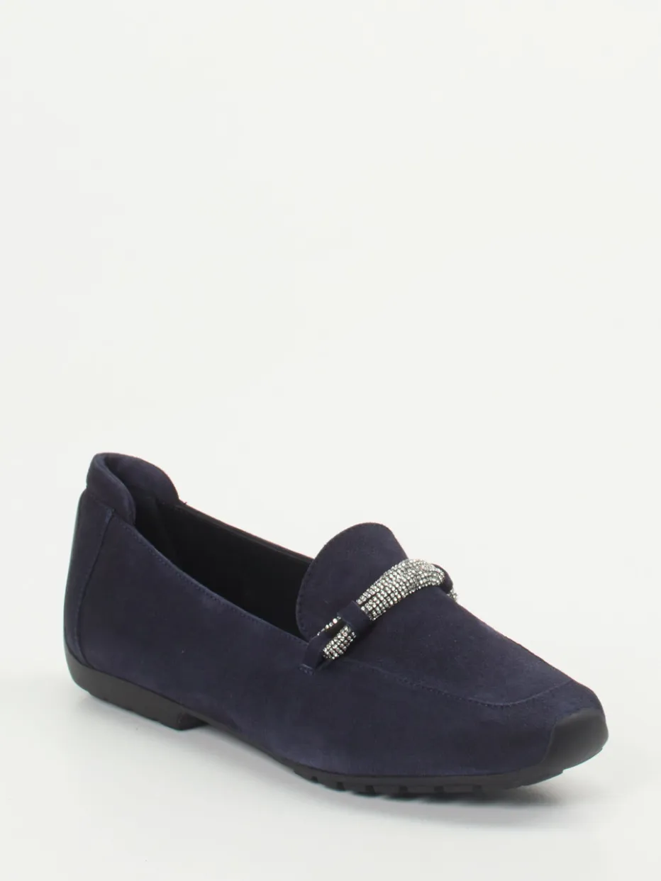 Eleganter Damen-Loafer von Mania mit samtigem Veloursleder und funkelnder Strassspange – ideal für stilvolle Auftritte zwischen Büroalltag und Freizeitmomenten.