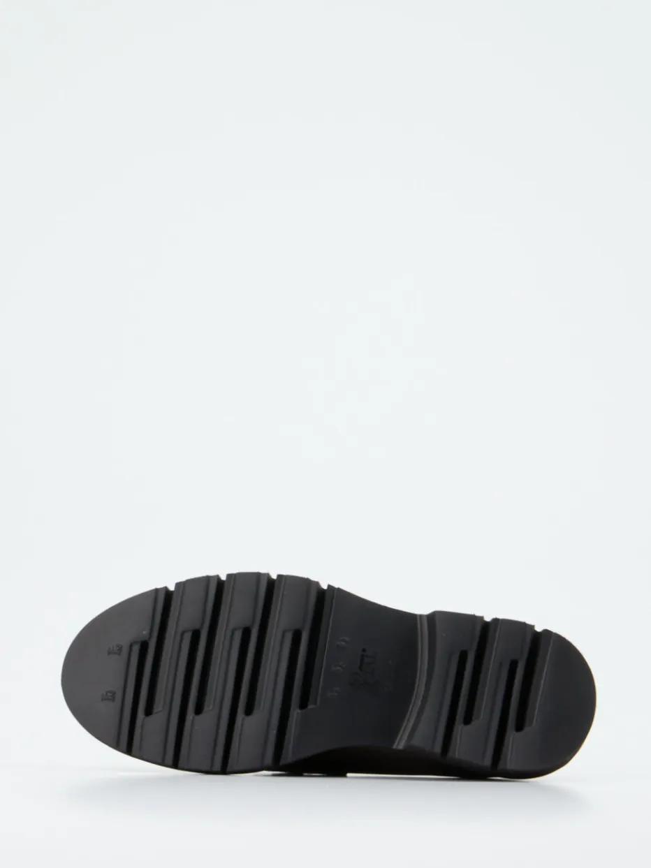 Dieser Damen-Loafer vereint glänzendes Lackleder mit minimalistischen Streetwear-Einflüssen in einer statementstarken Silhouette. Die markante Profilsohle und das Ketten-Detail setzen modische Akzente.