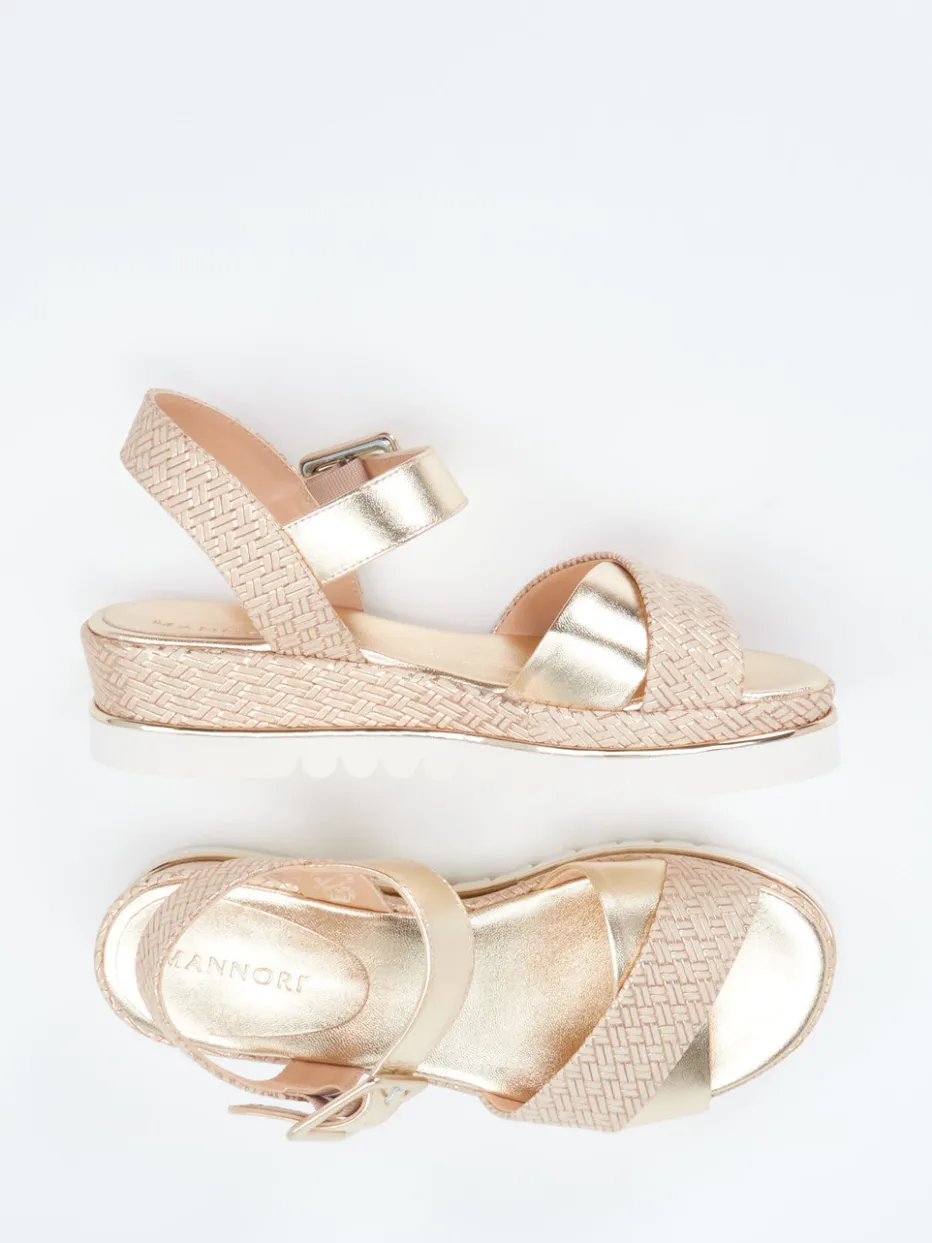 Damen Mannori – Keilsandalette aus Metallicleder Rosé-Beige