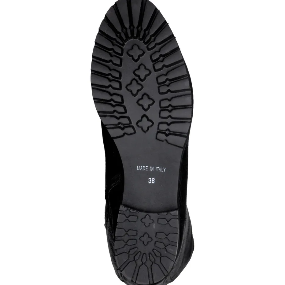 Der kniehohe Stiefel von Mannori verbindet hochwertiges Kalbleder mit wärmendem Lammfellfutter und klarer Reitstiefel-Silhouette. Made in Italy mit klassischer Ausstrahlung und hohem Tragekomfort.