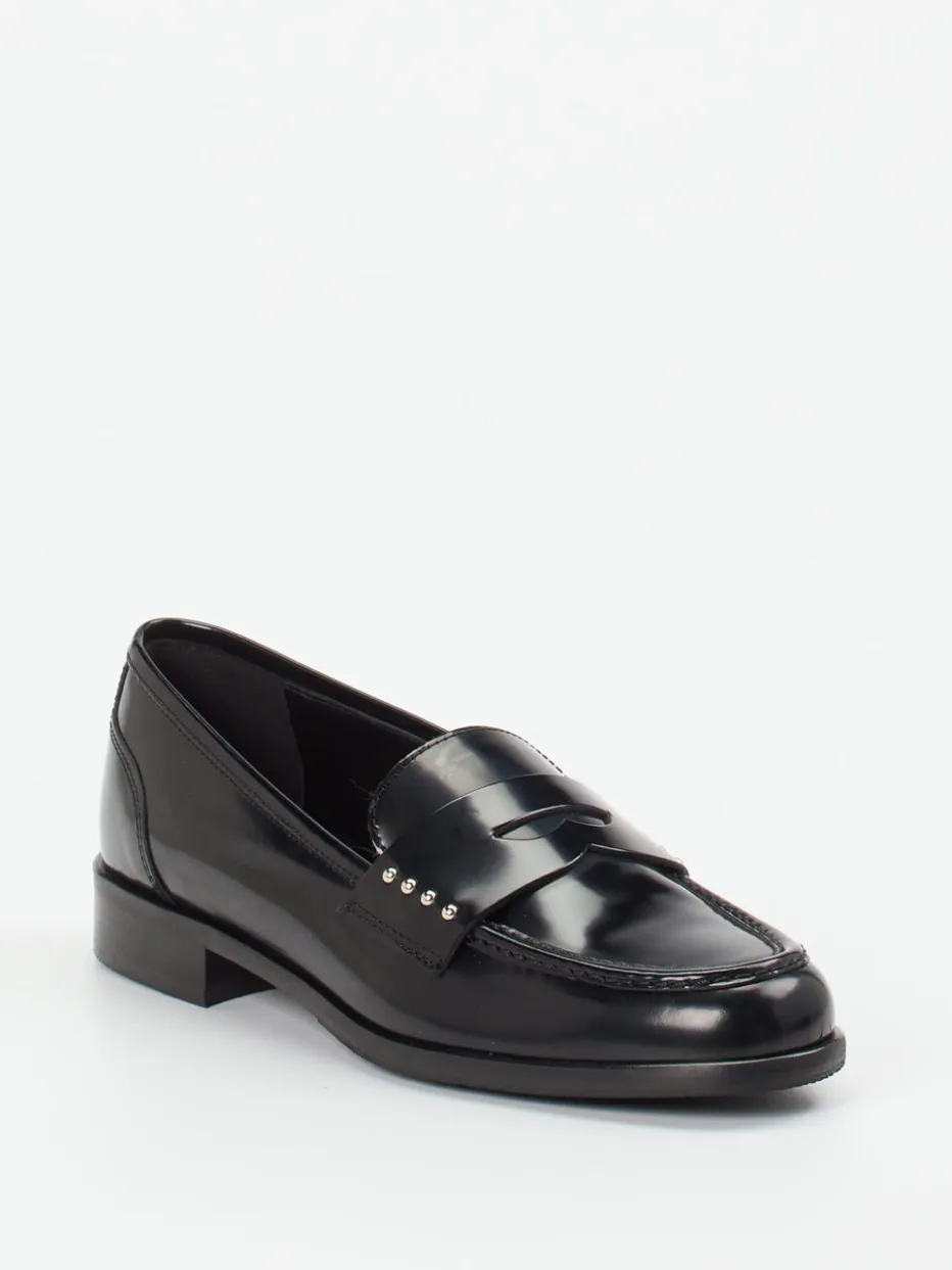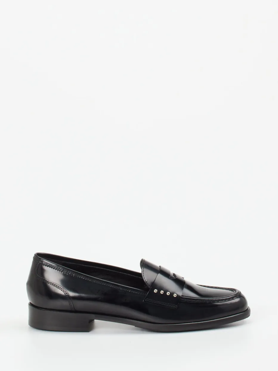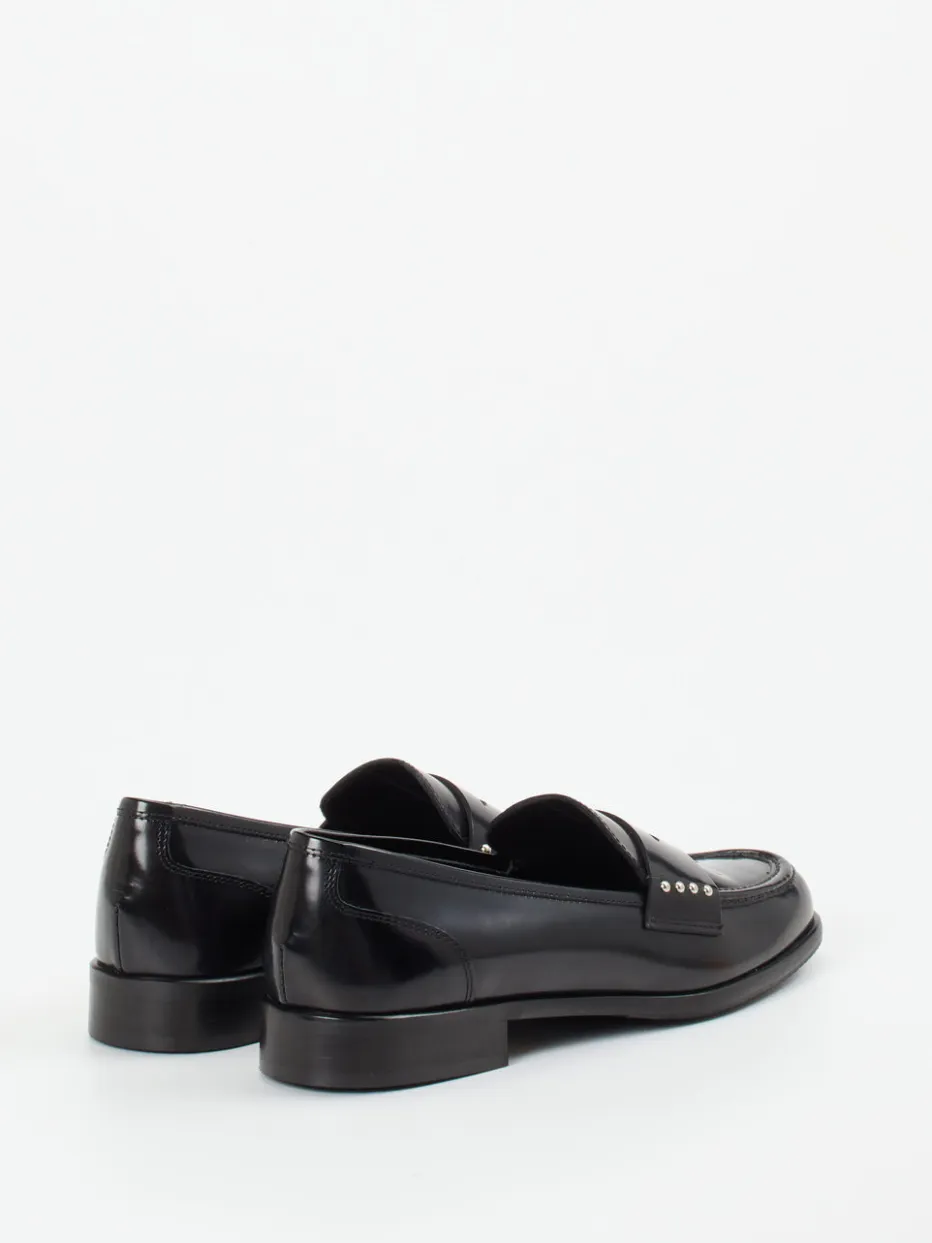 Glänzendes Hochglanzleder trifft klassische Formensprache auf zeitgemäße Weise. Der Loafer überzeugt durch edlen Minimalismus und dezente Metallic-Akzente.