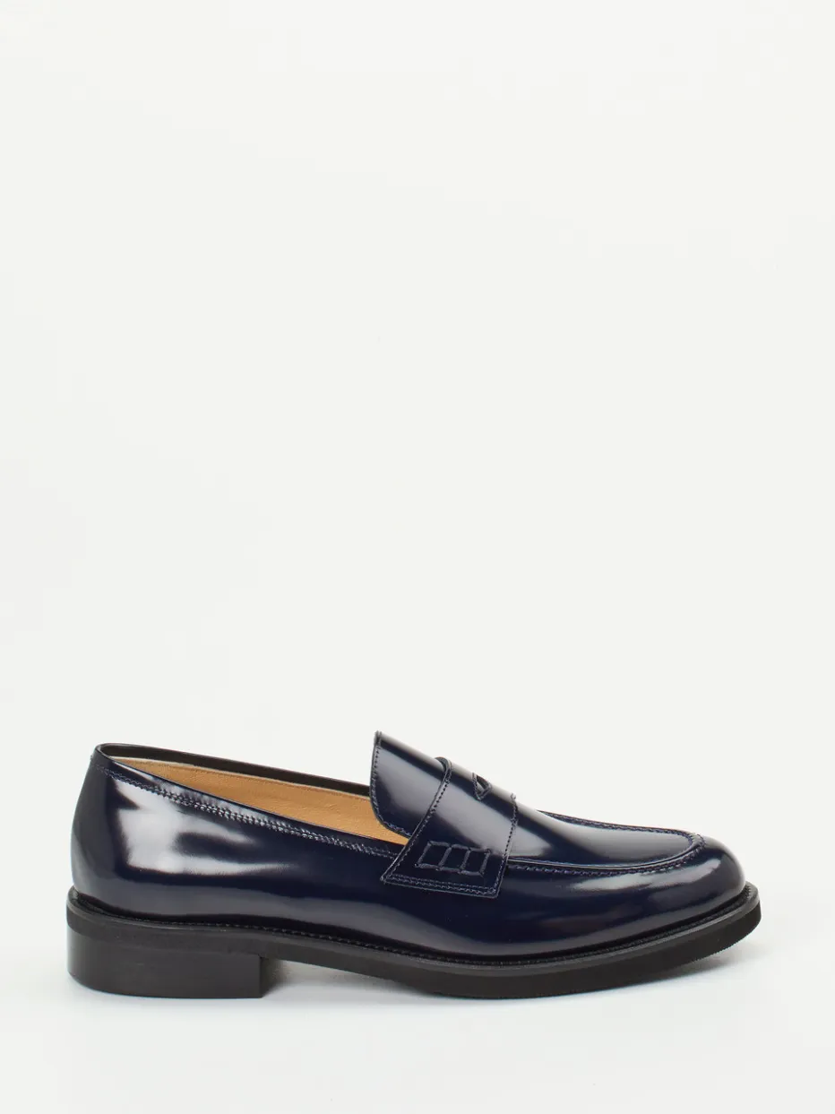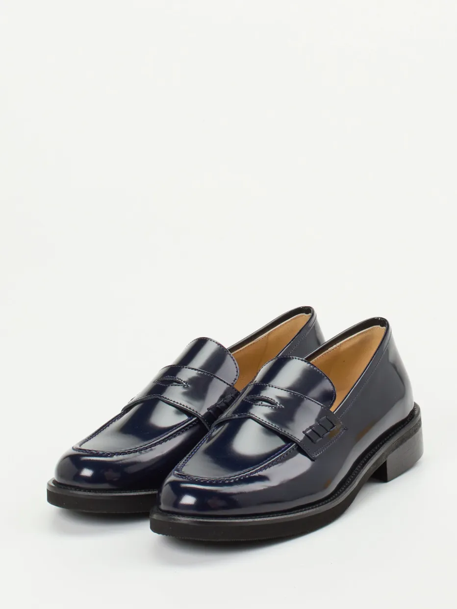 Gefertigt aus hochwertigem Hochglanzleder mit samtigem Nachtblauton, zeigt sich das Modell mit flacher Silhouette, verstärkter Ferse und charakteristischer Penny-Zunge. Das atmungsaktive Ziegenlederfutter und das gepolsterte Fußbett sorgen für Komfort, während die profilierte Leichtzellsohle zuverlässigen Halt bietet. Passend zur „Quiet Luxury“-Ästhetik ist der Look besonders bei minimalistischen Outfits gefragt.
