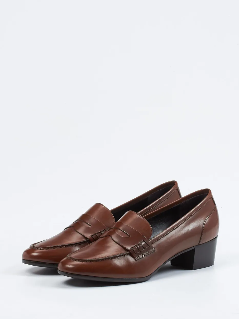 Dieser hochwertige Slipper der Marke Mannori vereint italienische Handwerkskunst mit klassischem Stilempfinden. Auf dem feminin-sportlichen Leisten besticht das cognacfarbene Kalbleder durch seine herausragende Geschmeidigkeit. Geschmackvoll setzen die Handnaht und die tonige Bride das Blatt in Szene. Die weich gepolsterte, lederbezogene Innensohle garantiert einen angenehmen Tragekomfort. Dieser wird durch die lederne Laufsohle und den Blockabsatz optimal unterstützt.