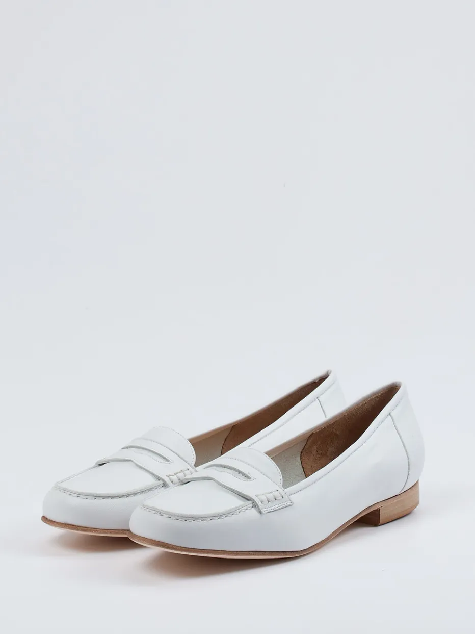 Dieser Damen-Loafer aus weißem Lammleder kombiniert klassische Silhouette mit moderner Reduktion. Hochwertige Verarbeitung und dezente Details unterstreichen den stilvollen Minimalismus.