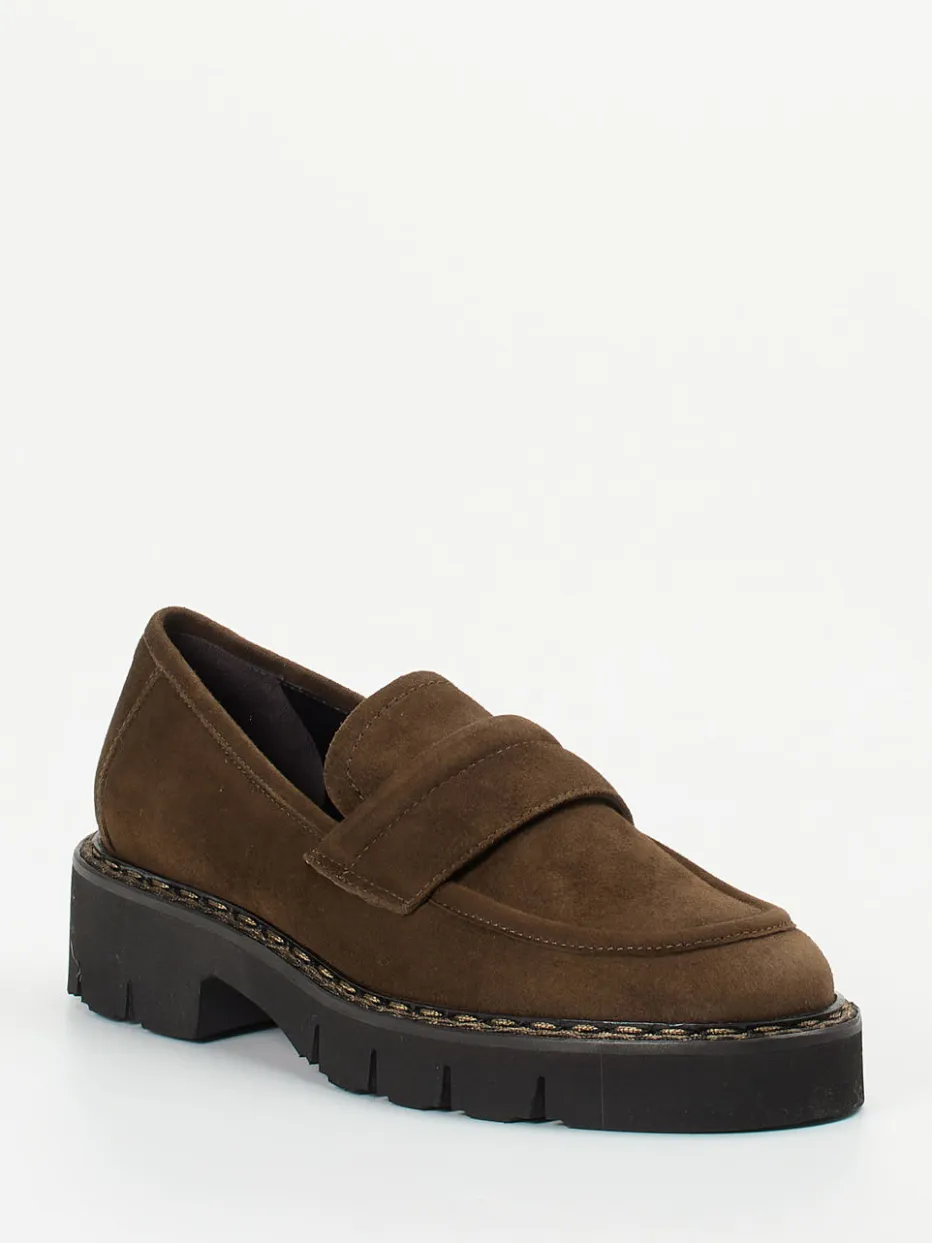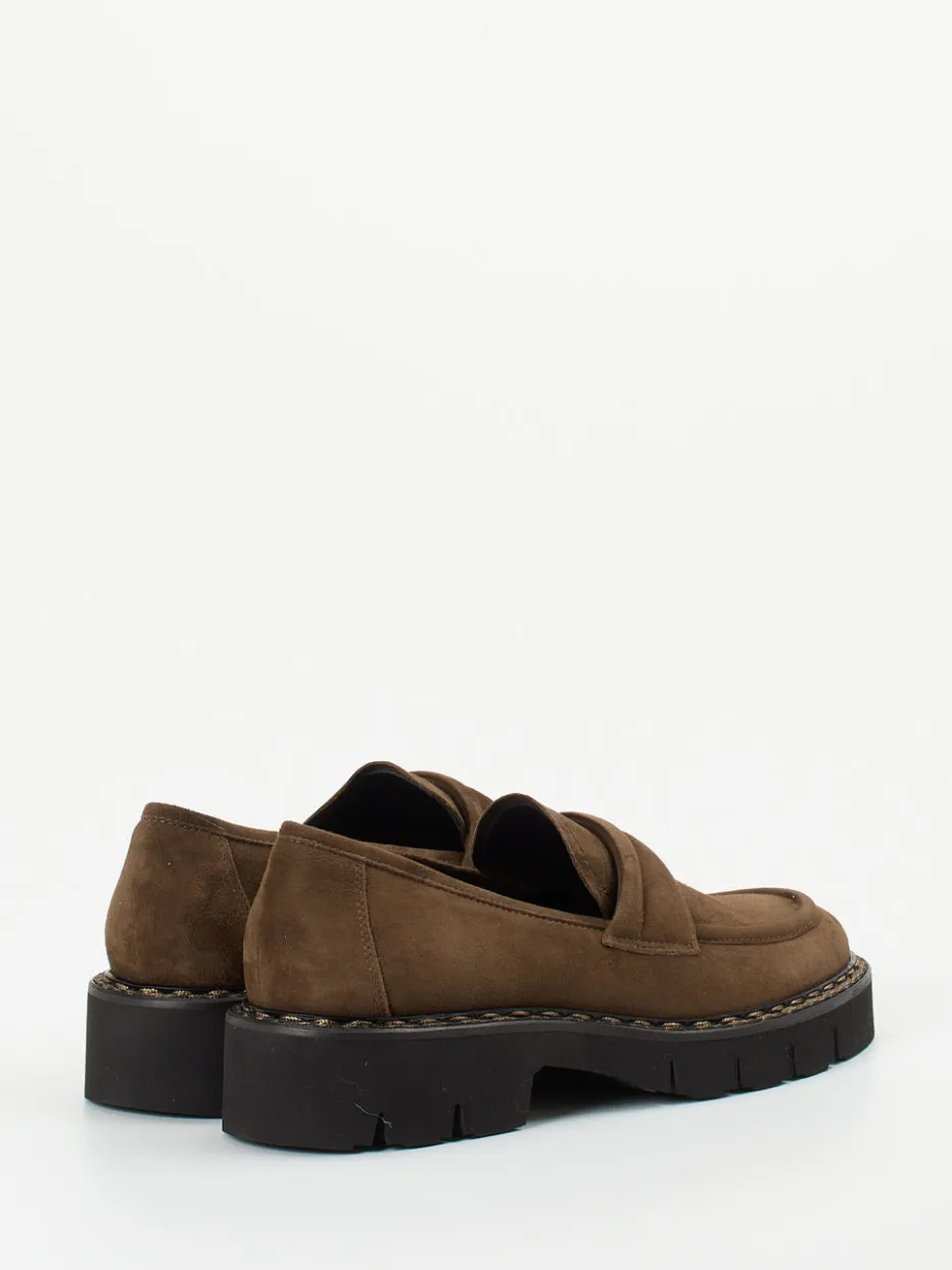 Der Chunky-Loafer von Mannori verbindet hochwertiges Veloursleder mit einer markanten Plateausohle – ideal für stilbewusste Looks zwischen Büro und Streetstyle.