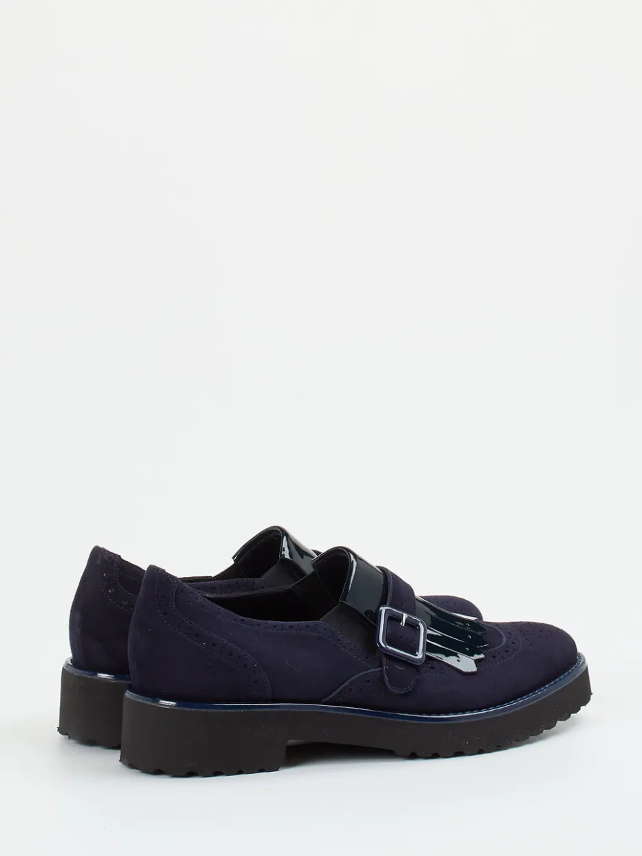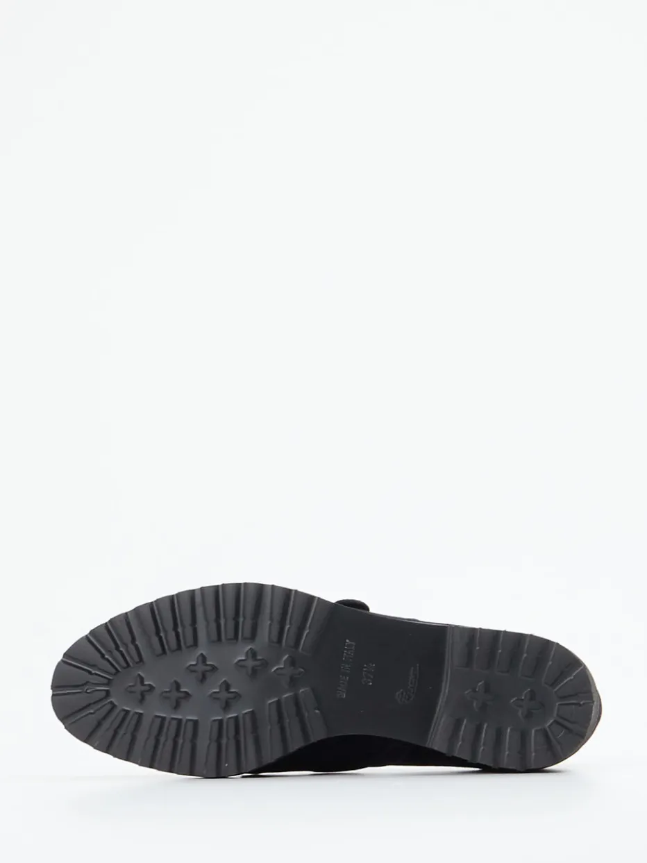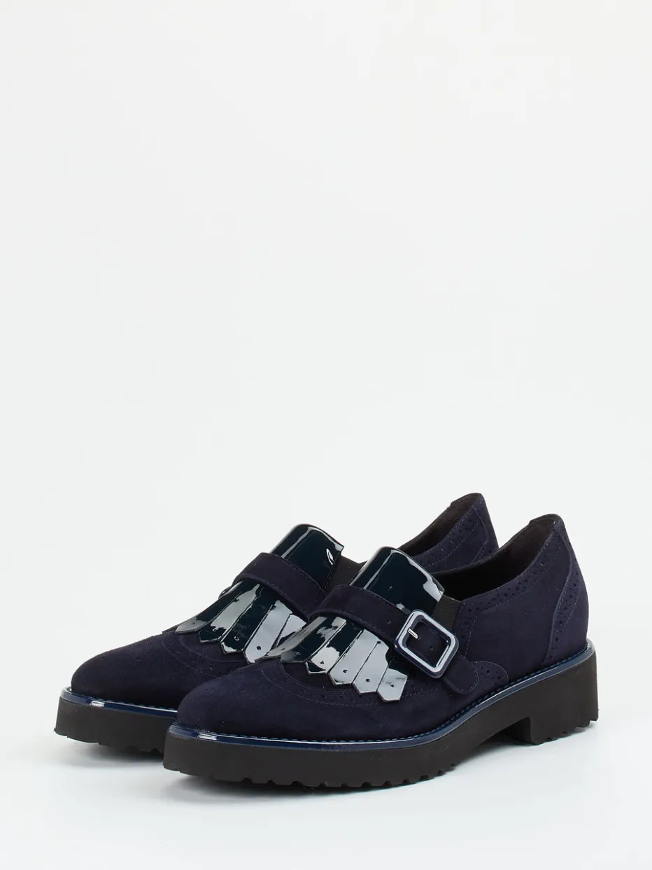 Dieser Damenloafer von Mannori verbindet samtiges Veloursleder mit glänzendem Lackakzent und bietet stilvolle Funktionalität für Alltag und Büro.