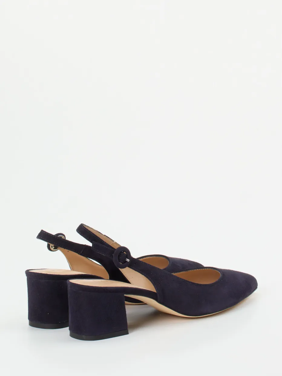 Diese Slingback-Pumps verbinden samtiges Veloursleder mit einem femininen Design und modernem Minimalismus – ein Highlight für formelle wie elegante Büro-Outfits.