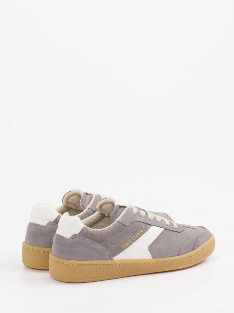Grauer Klassiker mit Retro-Charme.Marc O’Polo präsentiert einen Retro-Sneaker, der stilvolle Lässigkeit ausstrahlt. Ideal für entspannte Tage in der City oder unterwegs bietet das Modell ein basaltgraues Veloursleder-Obermaterial mit samtig-matter Oberfläche. Weißer Kalbleder-Einsatz und goldfarbener Logoprint sorgen für optischen Kontrast; die klassische Flachform mit profilierter Gummisohle kombiniert Alltagstauglichkeit mit urbanem Streetstyle. Das atmungsaktive Mesh-Innenfutter und das herausnehmbare Memory-Foam-Fußbett sorgen für hohen Komfort – auch bei längeren Strecken. Perfekt zu Chino und Crewneck. Ein vielseitiger Look mit hochwertiger Verarbeitung und authentischer 90s-Note.