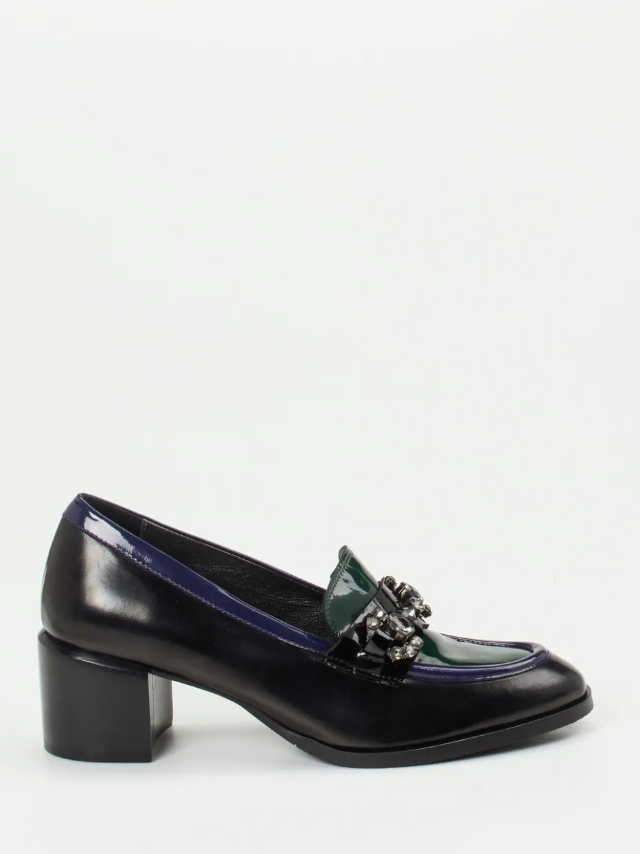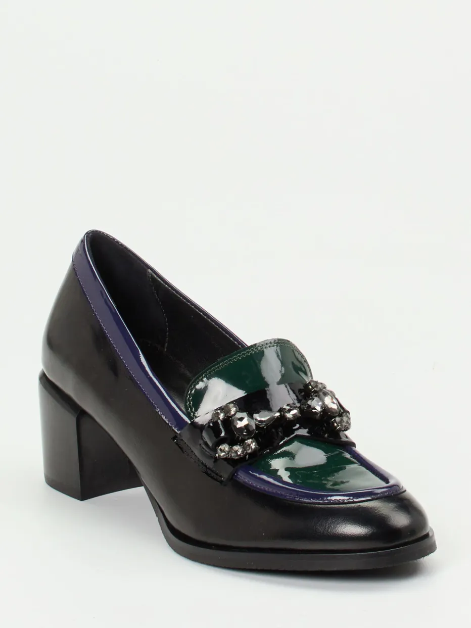 Glanzmomente für stilvolle City-Looks.Der Damen-Loafer von Maripé überzeugt als hochwertiger Begleiter im Business und urbanen Alltag. Sein glänzendes Lackleder in Schwarz, Dunkelgrün und Violett verleiht eleganten Outfits ein modisches Update. Die klassische Form mit markantem Blockabsatz und rutschhemmender Gummisohle sorgt für souveränen Auftritt, während die Schmuckspange mit facettierten Steinen ein klares Fokus-Element setzt. Die Kombination aus Trensenschmuck, Farbkontrasten und Vintage-inspiriertem Design trifft den „Quiet Luxury“-Trend. Ideal zu strukturierten Statement-Handtaschen und blickdichten Strumpfhosen tragbar. Ein durchdachtes Modell mit typischem Maripé-Finish und anspruchsvoller Linienführung.