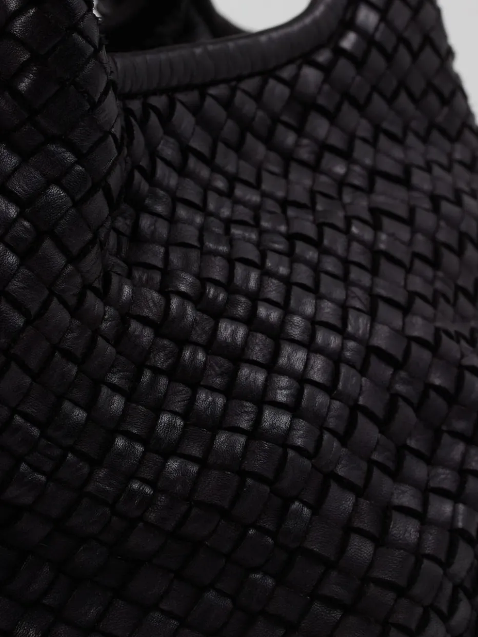 Die strukturierte Flechtoptik in tiefem Schwarz verleiht der kompakten Schultertasche von Marlon Firenze einen minimalistischen, zeitlosen Charakter – ideal für elegante und alltagstaugliche Looks.