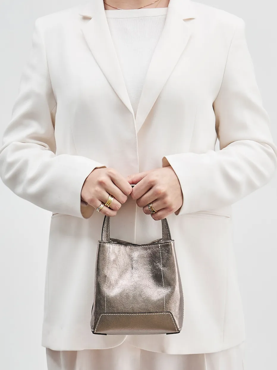Damen Marlon Firenze – Mini-Bucket-Bag aus Leder metallic