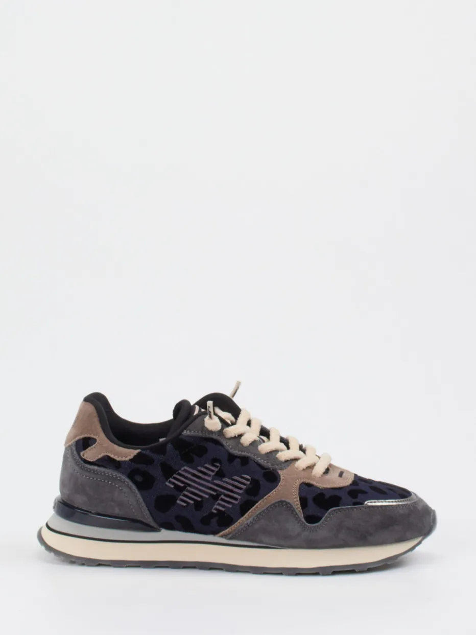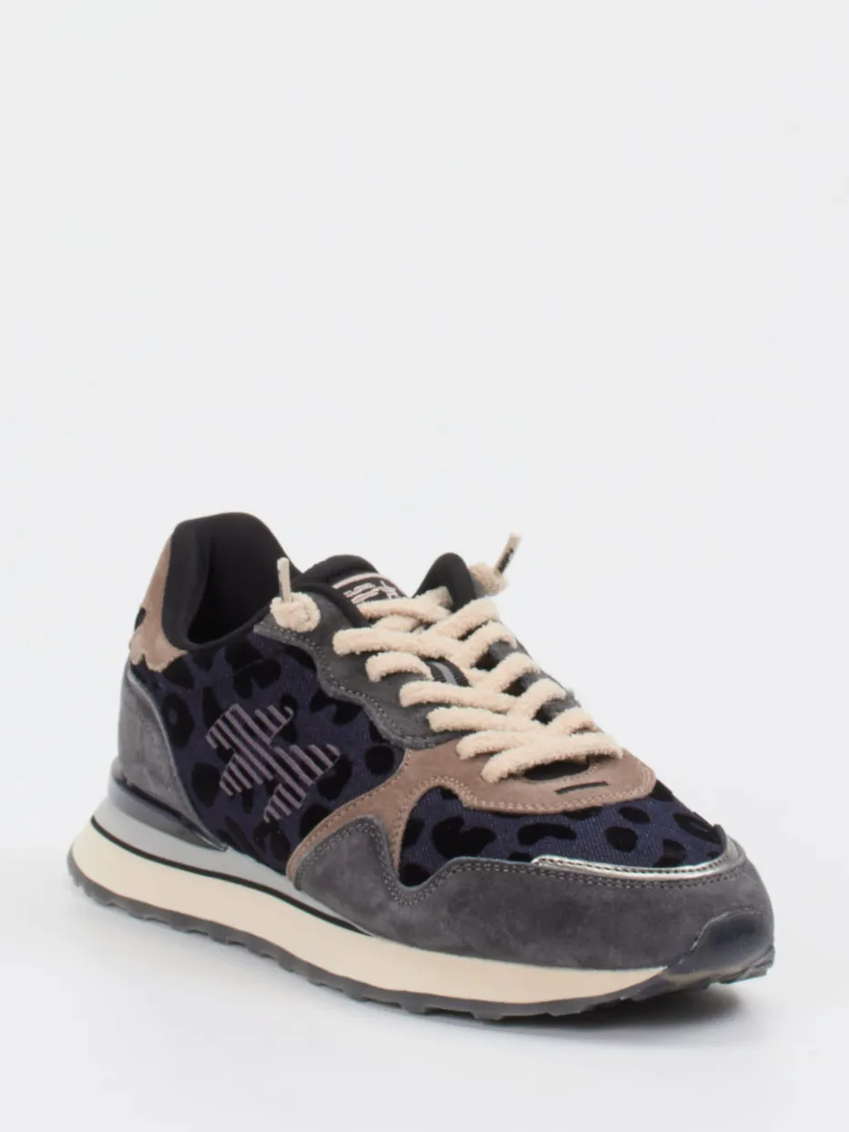 Trend-Update mit Animalprint.Die Marke MRP inszeniert Retro-Runner neu – mit expressivem Stil und unisex Appeal. Ideal für trendorientierte Streetstyle-Looks in Alltag oder Freizeit: Der Sneaker aus robustem Textil wird durch samtig angeschliffenes Veloursleder fein akzentuiert. In Dunkelblau mit taupefarbenen und anthrazitgrauen Details zeigt sich seine Profilsohle markant in transluzentem Gummi mit animalischem Muster. Eine Ton-in-Ton-Stickerei sowie gepolsterter Schaft sorgen für visuelle Raffinesse und hohen Komfort. Die klassische Silhouette mit Schnürung passt nahtlos in Retro-orientierte Urbanwear. Modischer Komfort mit klarer Formsprache und stylischem Materialkontrast.