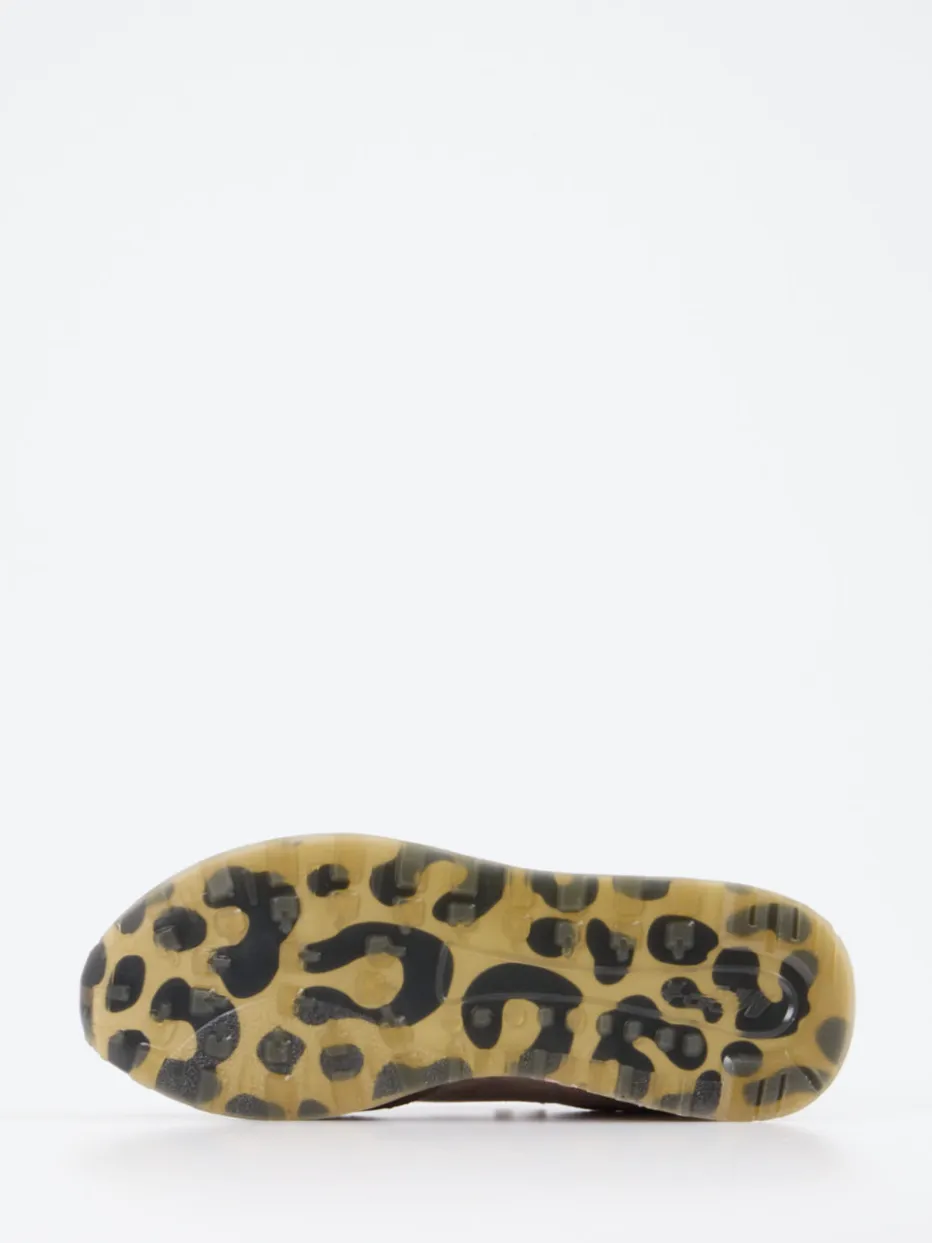 Der Materialmix aus samtigem Veloursleder und Textil verleiht diesem Sneaker eine stilvolle Dynamik. Hingucker sind der Leo-Fersendruck und die bordeauxfarbene Kontursohle.