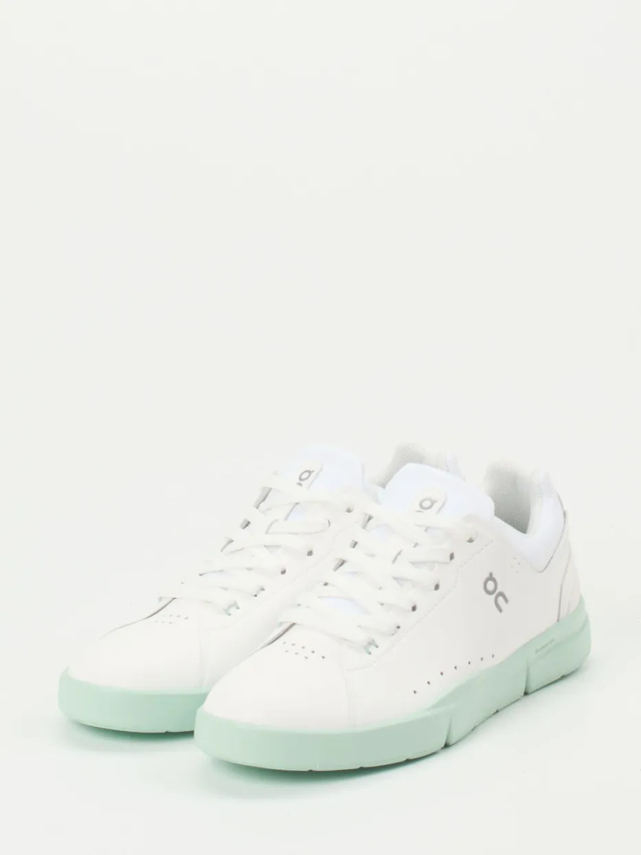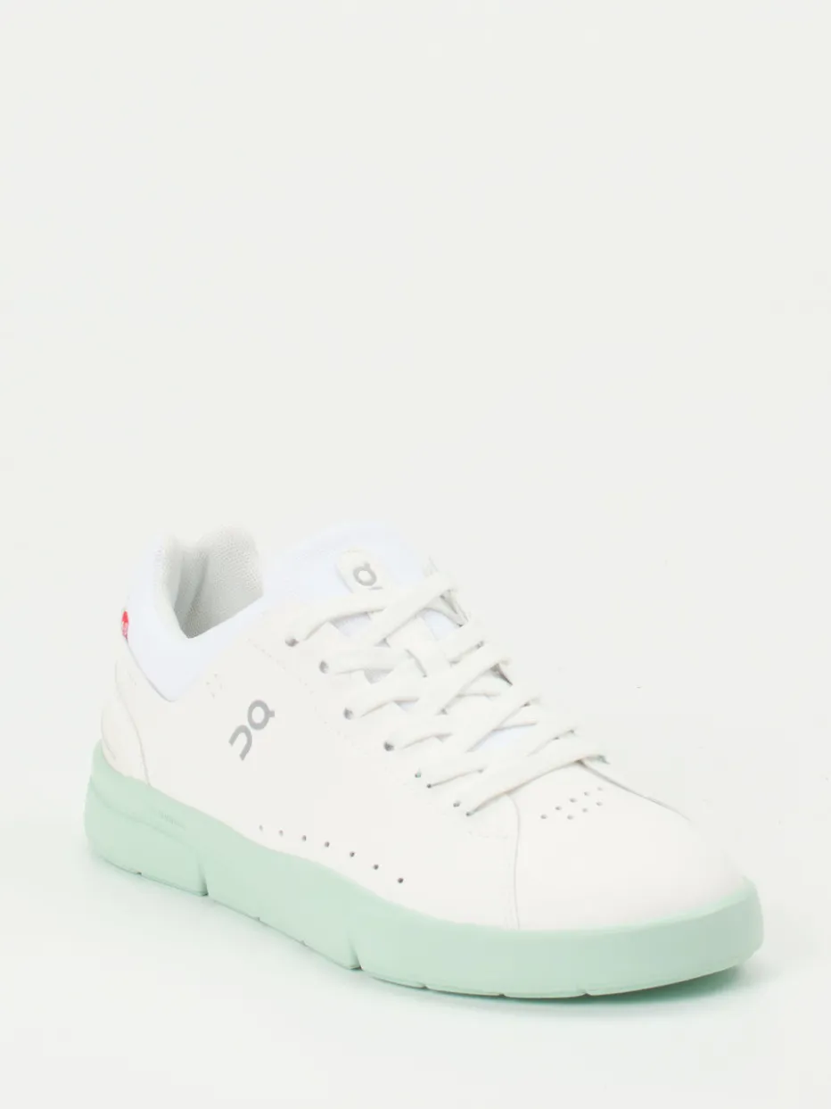Minimalistische Linie trifft Komfort.Der Sneaker von ON bringt sportlichen Anspruch in die Freizeitmode. Dank weißem Leder mit glatter Oberfläche und atmungsaktiver Mesh-Textil-Kombination spielt das Modell „The Roger Advantage“ mit einem cleanen, vom Tennis inspirierten Look. Die flache Silhouette und die mintgrüne CloudTec®-Sohle setzen dezente Akzente im Pastelltrend der Saison. Schnürung, gepolsterter Einstieg und die funktionale Gummisohle bieten Alltagstauglichkeit – auch für leichte sportliche Aktivitäten. Ideal für urbane Styles mit minimalistischem Anspruch. Kombiniert Swiss Engineering mit stilvoller Zurückhaltung für ganztägigen Tragekomfort.