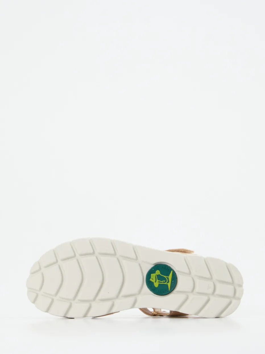 Sommerlicher Komfort trifft eleganten Glanz.Panama Jack präsentiert eine goldfarbene Damen-Keilsandalette mit komfortsteigernden Details und moderner Ästhetik. Ideal für entspannte Ausflüge in der Stadt oder den Urlaub: Das samtig angeschliffene Kalbleder mit Metallic-Finish schimmert edel im Champagner-Goldton. Die offene, ergonomisch geformte Silhouette punktet mit zwei individuell verstellbaren Klettverschlüssen. Ein gepolstertes Fußbett, die rutschfeste weiße Gummisohle und der leichte Keilabsatz in Korkoptik bieten dauerhaft angenehmen Tragekomfort. Zierniete mit Logo und florale Fußbettprägung setzen stilvolle Akzente. Ein hochwertiger Begleiter für anspruchsvolle Casual-Looks mit Trendgespür.