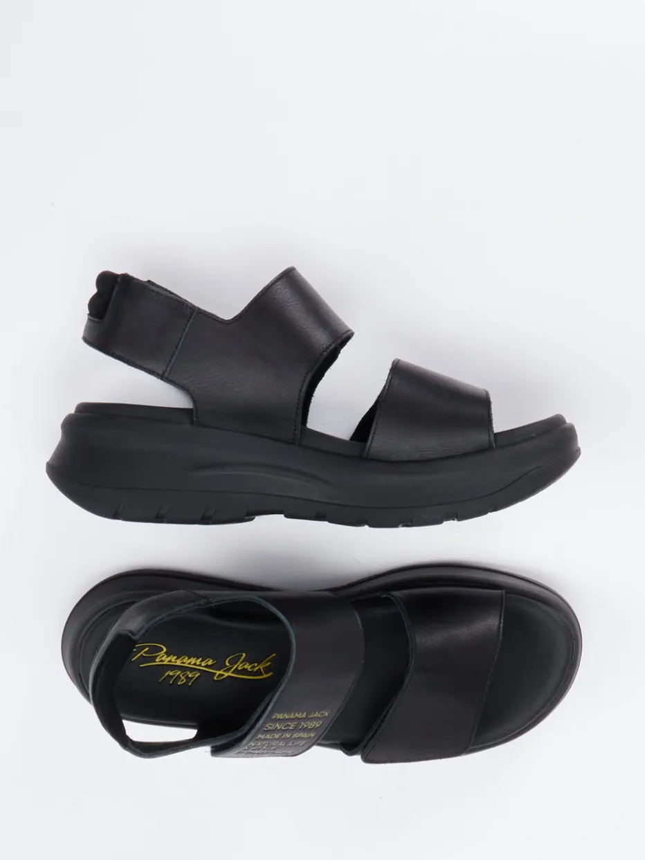 Die schwarze Plateau-Sandale von Panama Jack vereint hochwertigen Komfort mit einem modernen, chunky Design – perfekt für urban inspirierte Sommerlooks.