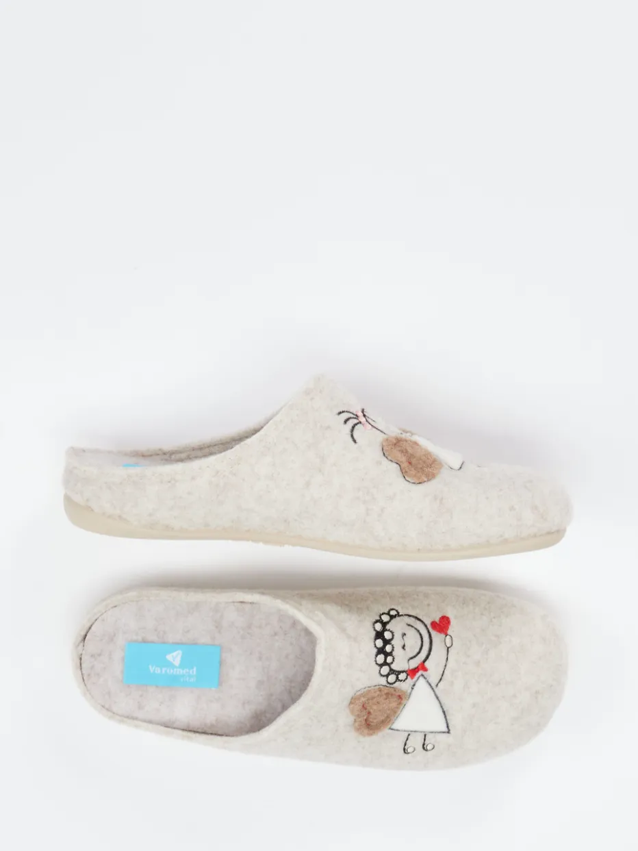 Varomed präsentiert diese Damen-Pantoffeln aus weichem Filz in einer natur-inspirierten Beigegrau-Nuance – ideal für gemütliche Homewear-Momente.