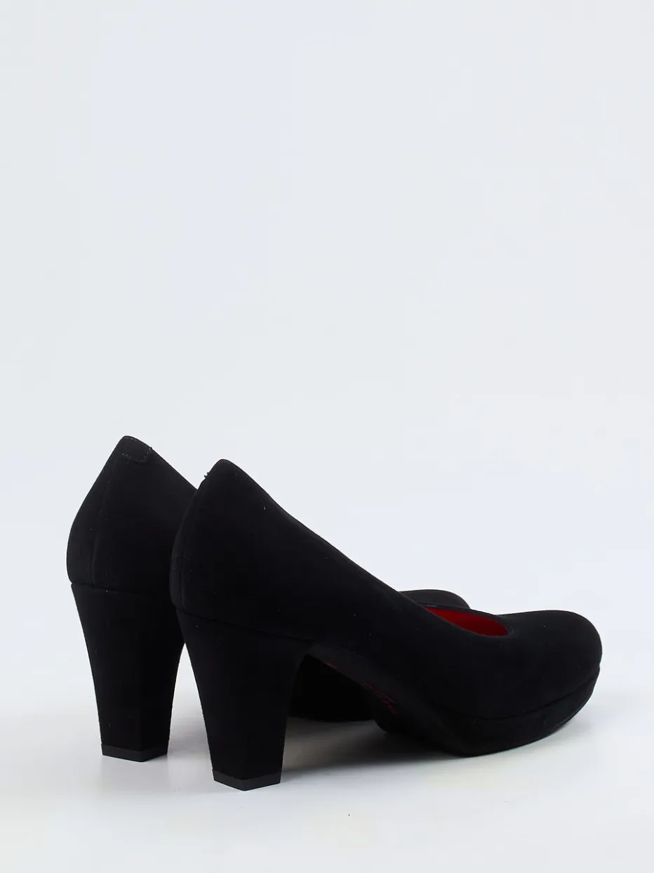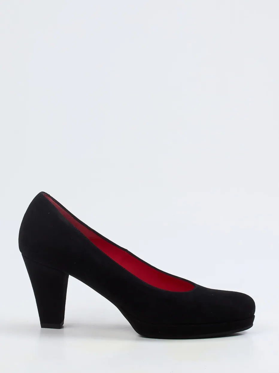 Dieser Pumps kombiniert feines Veloursleder mit einem komfortablen Blockabsatz und überzeugt durch klassische Silhouette sowie angenehme Passform.
