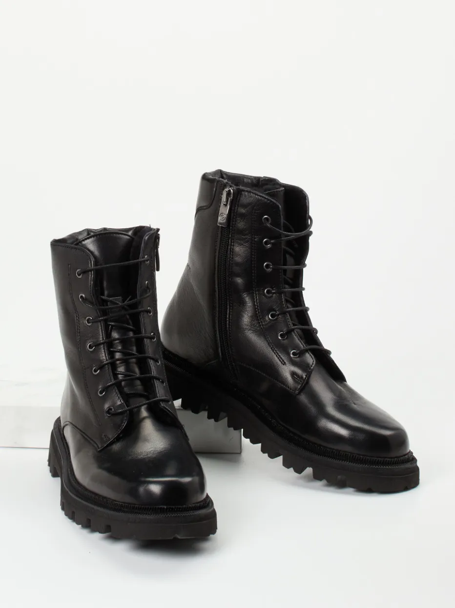 Stilvoll gerüstet für kalte Tage.Pas de Rouge präsentiert elegante Schnürboots für Damen mit luxuriösem Komfort. Ob auf winterlichen Stadtwegen oder beim Spaziergang am Sonntagnachmittag – das schwarze, glänzende Lammleder mit monochromer Optik überzeugt durch seine edle Präsenz. Das kuschelige Innenfutter aus Lammfell sorgt für Wärme, während der seitliche Reißverschluss schnelles Anziehen ermöglicht. Die profilierte Leichtzellsohle mit erhöhter Konstruktion bietet ausgezeichneten Grip und schützt zugleich vor Bodenkälte. Klare Linienführung und unaufdringliches Design machen den Boot vielseitig kombinierbar – besonders zu Cargohose und Wollmantel. Pas de Rouge steht für stylische Funktionalität mit italienischem Feinsinn.
