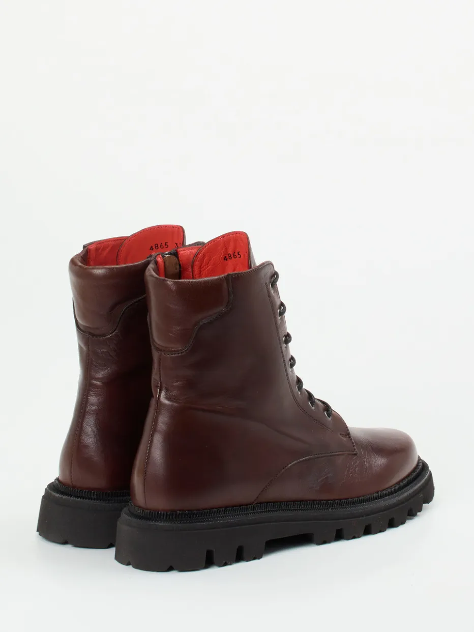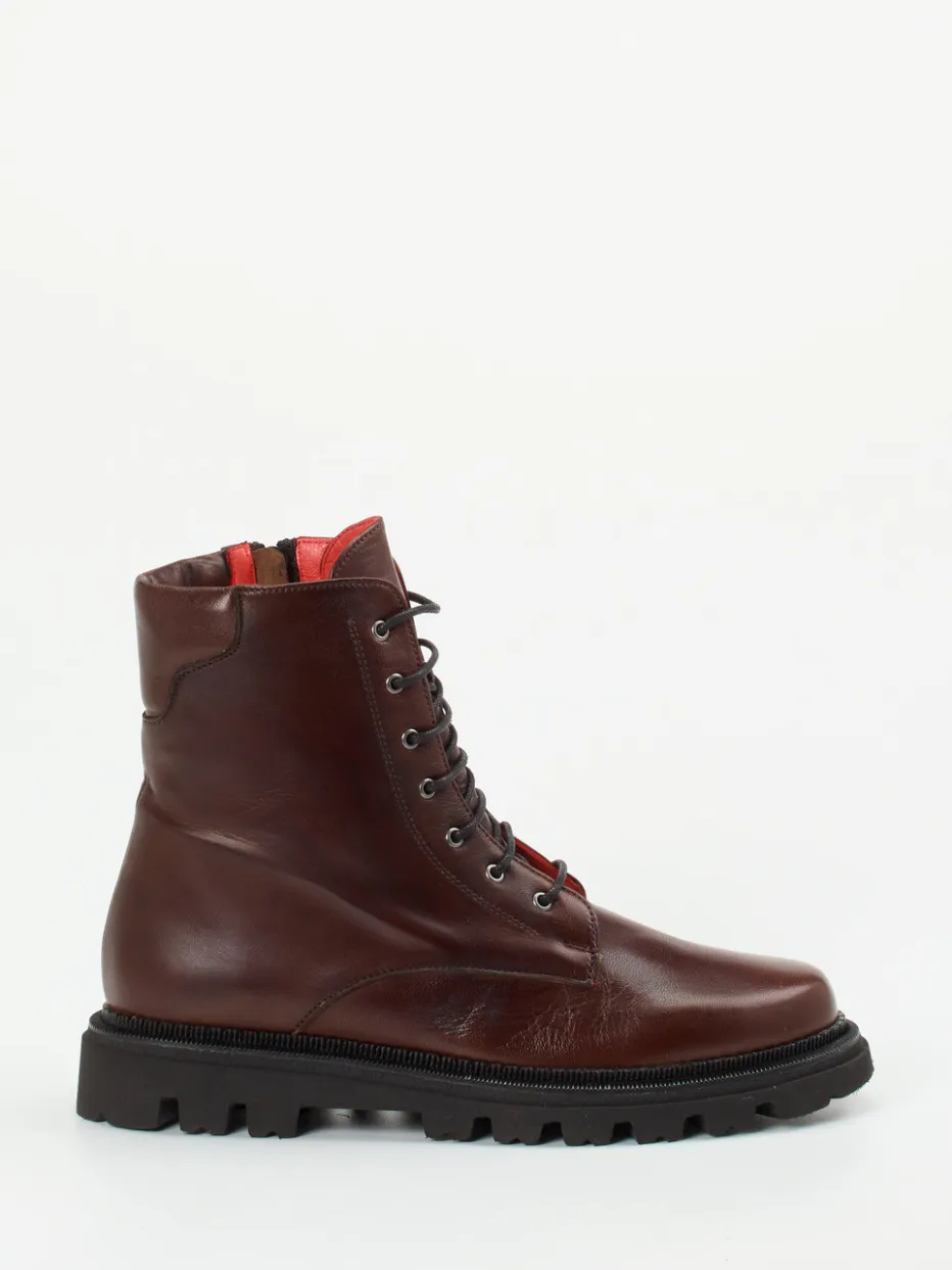 Stilvoll robust durch Herbst und Winter.Pas de Rouge präsentiert mit diesen Schnürboots ein Modell für Alltag und Freizeit mit Anspruch. Gefertigt aus hochwertigem Lammleder mit glatter, leicht glänzender Oberfläche in Kastanienbraun, überzeugt die klassische, hochschaftige Form mit einer Kombination aus Schnürung und seitlichem Reißverschluss. Auffällig: das Innenfutter aus Ziegenleder mit rotem Velourslederpatch an der Ferse – ein raffiniertes Detail mit Mehrwert. Die kräftige Profilsohle sorgt für Trittsicherheit. Inspiriert von Utility und Chunky-Trends im Winter 2024. Luxuriöser Komfort trifft handwerkliche Finesse aus der italienischen Schuhmanufaktur.