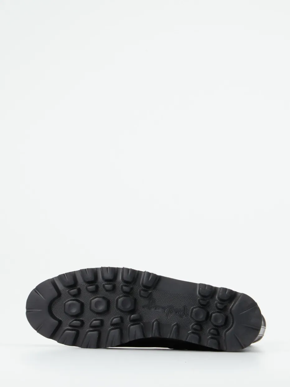 Ideal für bewegte Tage in der Stadt überzeugt das schwarze Modell durch weiches Lammleder mit matter Haptik. Die geradlinige Silhouette, dezente Glanzpartien an der Ferse und der seitliche Ton-in-Ton-Reißverschluss fügen sich harmonisch in das reduzierte Design. Die betonte Leichtzellsohle mit ausgeprägtem Profil sorgt für Stabilität und passt perfekt zu Outdoor-Elementen wie Oversized-Mantel oder grober Strick. Trendthemen wie Quiet Luxury und Heavy Sole werden dabei subtil interpretiert.