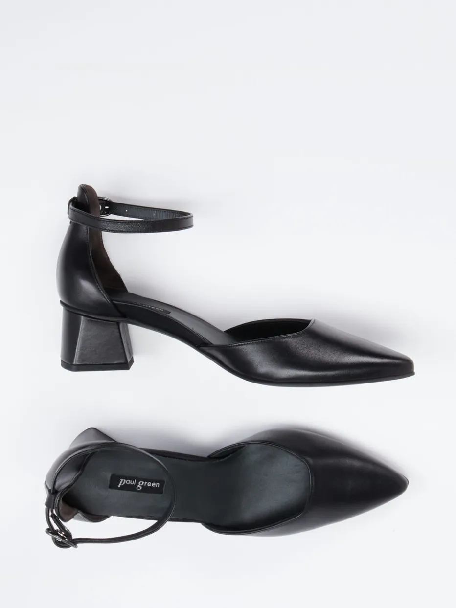 Schlichte Klasse für formelle Anlässe.Paul Green präsentiert mit diesen Pumps ein Modell der ruhigen Eleganz – reduziert, hochwertig, stilvoll. Ideal für Geschäftstermine oder festliche Events: Das schwarze Lammleder mit matter Oberfläche betont die klare Form dieses spitz zulaufenden Ankle Strap Pumps. Ein filigranes Fesselriemchen mit silberner Schnalle bietet sicheren Halt. Der dezente Blockabsatz verleiht Stabilität und sorgt für angenehme Laufhöhe. Der schwarze Ton-in-Ton-Look mit dezenter Nahtführung fügt sich in moderne „Quiet Luxury“-Trends ein. Kombinierbar zu Business-Blazer oder Cocktailkleid. Paul Green vereint anspruchsvolles Design mit hochwertigem Tragekomfort.