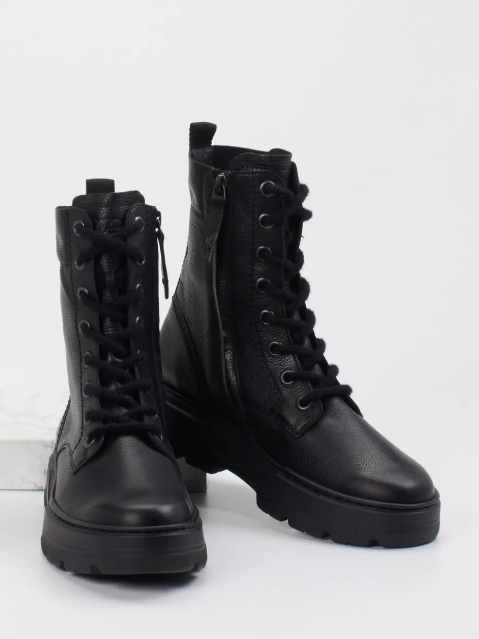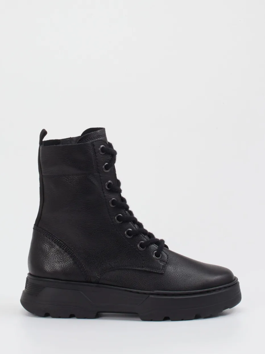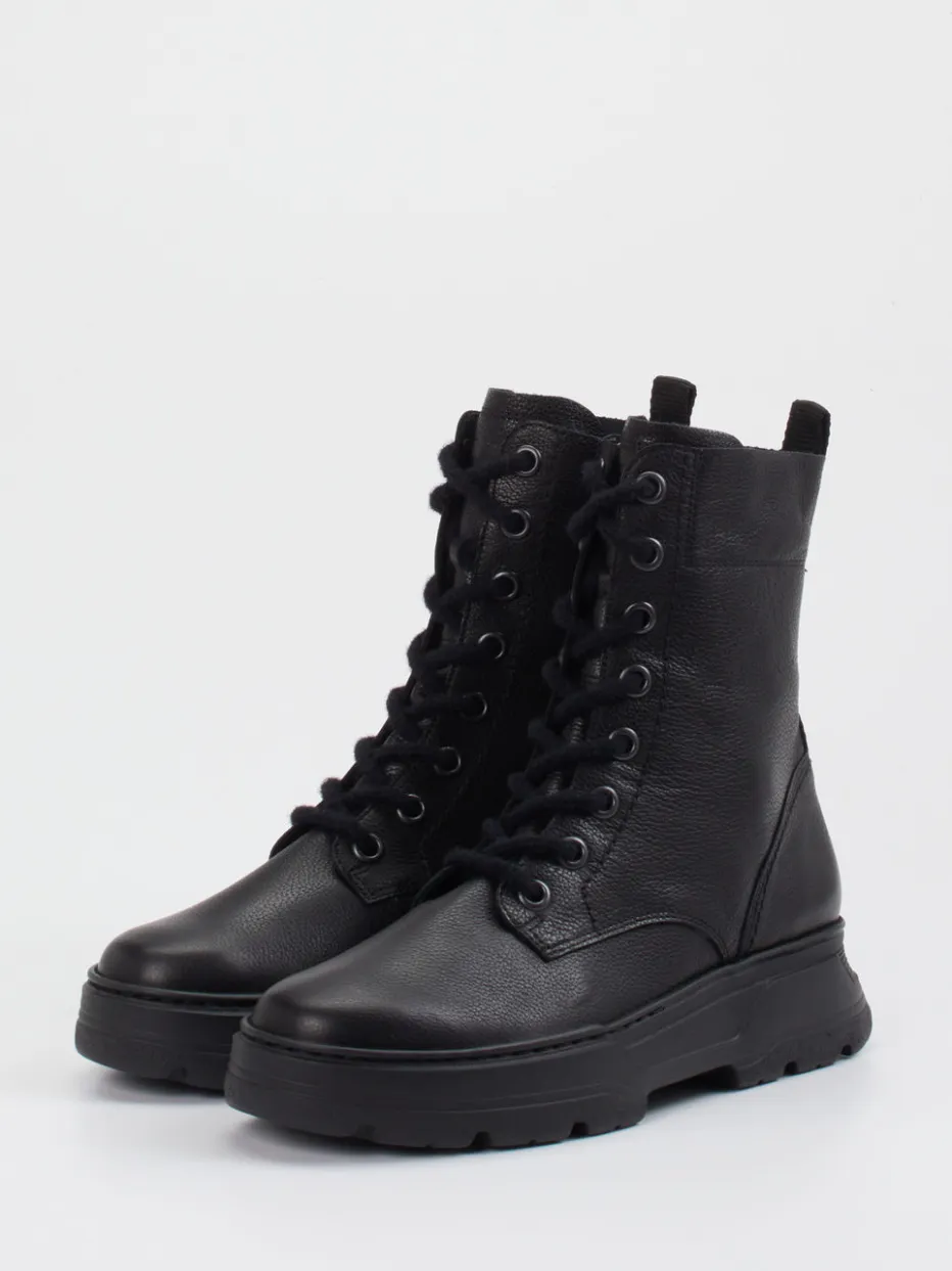 Paul Green präsentiert mit diesen Schnürboots ein stilvolles Modell für anspruchsvolle Damen. Wenn klare Linien und funktionales Design gefragt sind, überzeugt dieses Modell mit hochwertigem, genarbtem Kalbleder und hohem Schaft. Die Kombination aus Schnürung und seitlichem Reißverschluss erleichtert den Einstieg, während schwarze Metallösen und Ton-in-Ton-Nähte das monochrome Gesamtbild schärfen. Die robuste Profilsohle aus Gummi bietet rutschfesten Halt – auch an nassen Tagen. Inspiriert vom Chunky-Trend mit Anleihen im Utility-Stil, passt die Stiefelette perfekt zu legeren Oversize-Mänteln oder minimalistischen Looks. Ein Modell, das Komfort, Langlebigkeit und urbanen Anspruch der Marke Paul Green vereint.