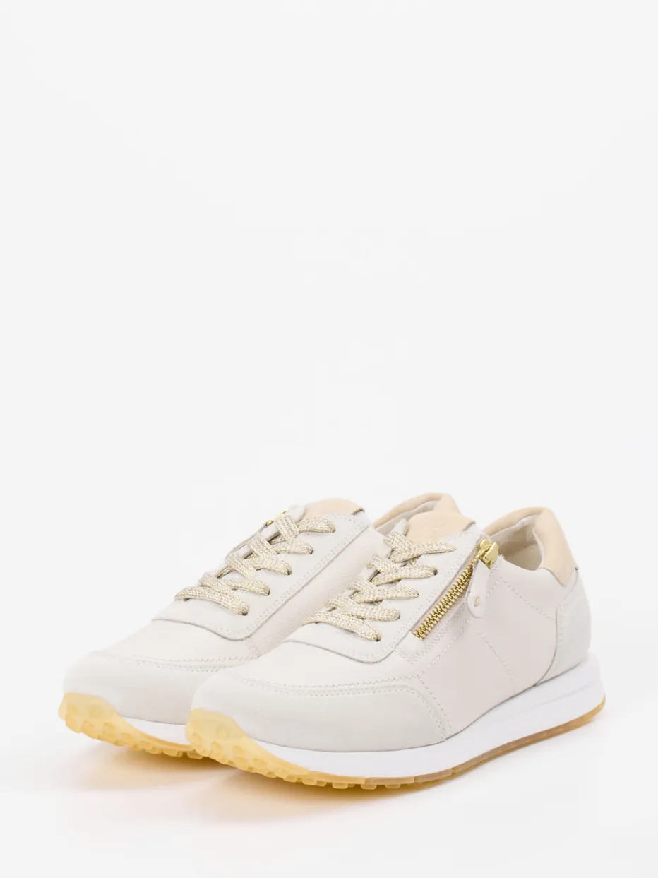 Unaufgeregt stilvoll, perfekt für jeden Tag.Paul Green zeigt mit diesem Damen-Sneaker eine zurückhaltend-elegante Interpretation sportlicher Alltagstauglichkeit. Die Kombination aus glattem, sandfarbenem Kalbleder und samtigem Veloursleder verleiht dem Modell eine wertige Haptik mit matter Oberfläche. Beige und cremefarbene Nuancen, eine klassische, schmale Form sowie goldene Akzente wie Reißverschluss und Schnürung unterstreichen die zurückhaltende Optik. Dank der profilierten Gummisohle und dem lederbezogenen Wechselfußbett bietet der Schuh hohen Komfort. Er eignet sich ideal für stilvolle Casual-Outfits im Sinne von Soft Neutrals oder Quiet Luxury. Markentypischer Komfort trifft dezente Farbwahl für vielseitige Looks.