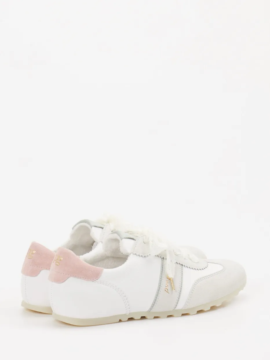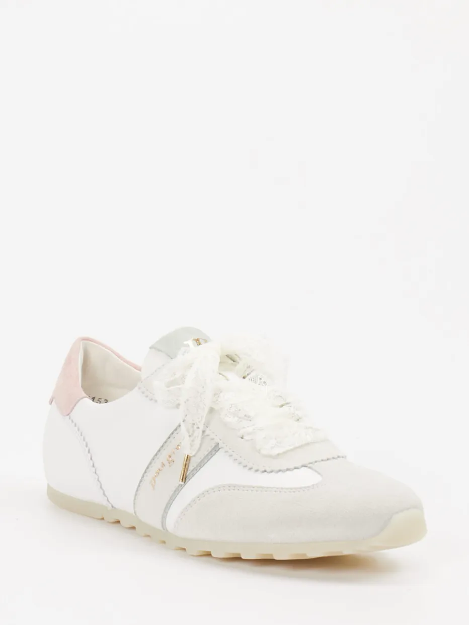 Dieser feminine Sneaker kombiniert pastellfarbene Akzente, zarte Spitzendetails und einen hochwertigen Materialmix zu einem trendbewussten Freizeit-Allrounder.