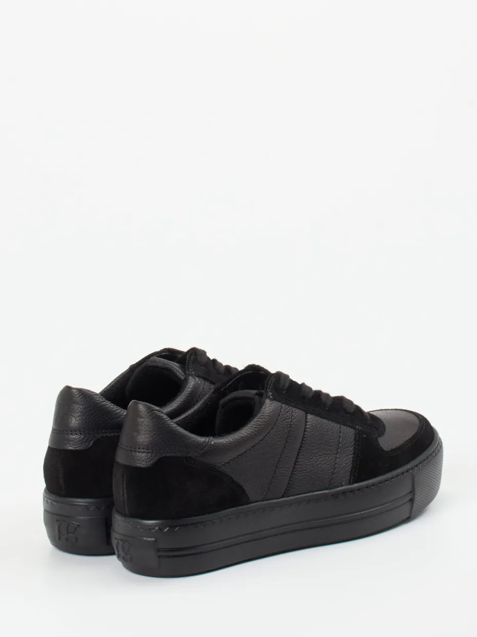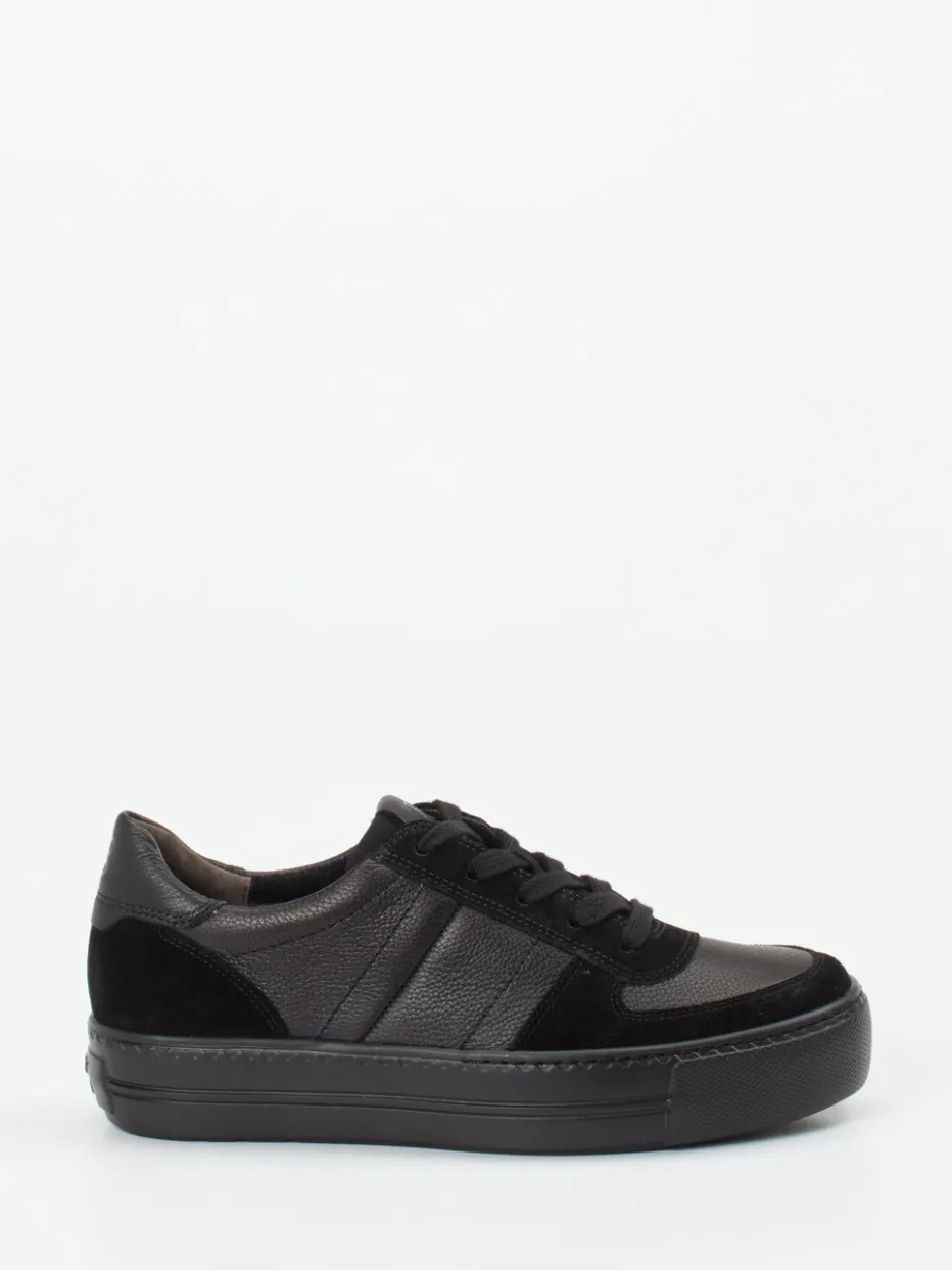 Minimalistisch. Monochrom. Alltagstauglich.Dieser Damen-Sneaker von Paul Green verbindet stilvolle Schlichtheit mit hochwertigen Materialien. Für entspannte Citytage oder entspannte Alltagslooks konzipiert, überzeugt das schwarze Modell durch einen edlen Mix aus genarbtem Glattleder und samtigem Veloursleder. Die klassische, runde Form wird durch eine Schnürung ergänzt, während die erhöhte Gummisohle mit leichtem Plateau angenehmen Laufkomfort bietet. Ton-in-Ton gehalten passt der Sneaker zu monochromen Outfits sowie modernen Streetwear-Looks und unterstreicht den Materialtrend der Saison. Paul Green steht für handwerkliche Veredelung und stilbewusste Funktionalität.