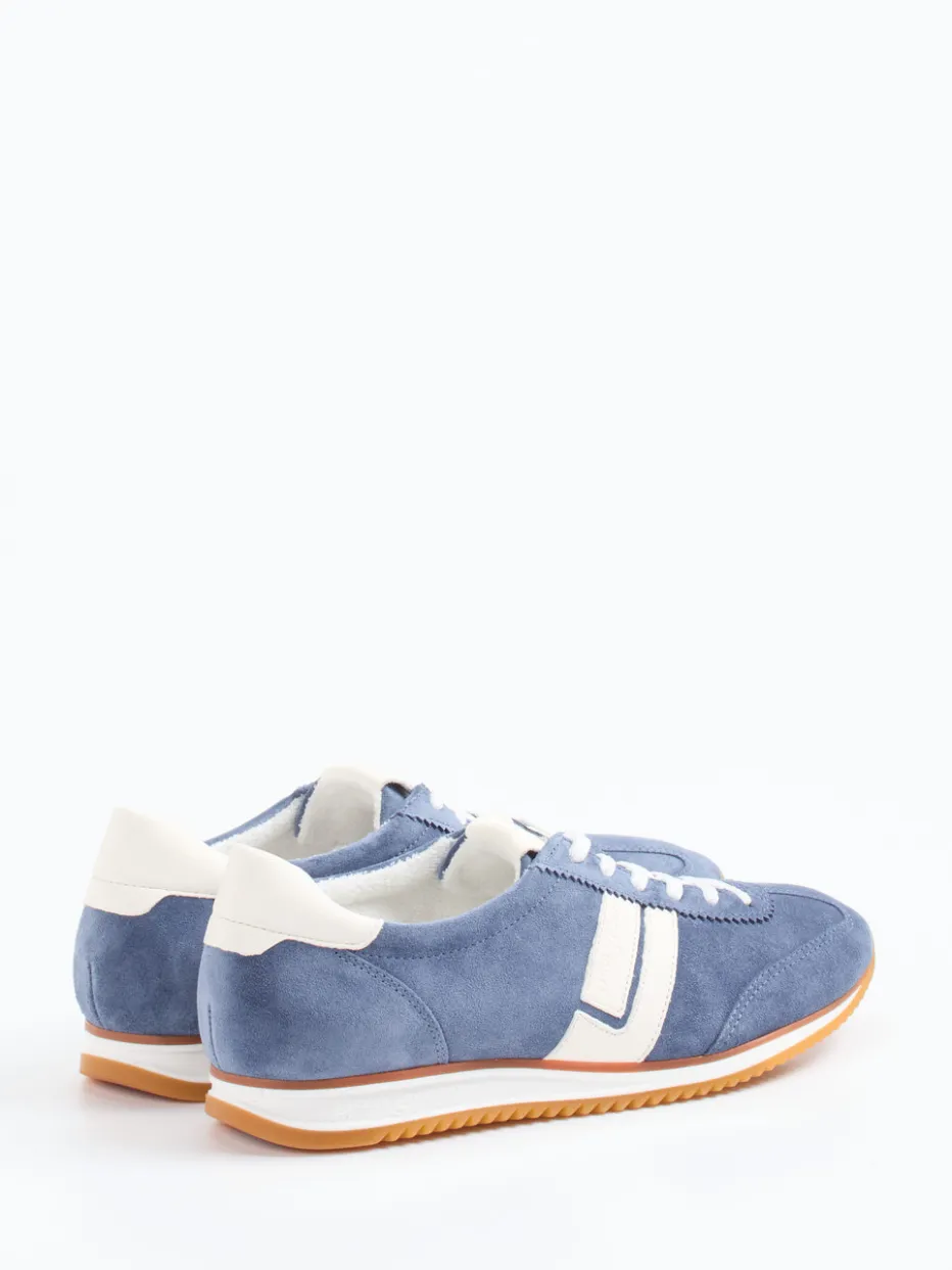 Streetstyle mit Retro-Charakter.Paul Green interpretiert den klassischen Retro Runner neu – mit einem Sneaker aus samtig angeschliffenem Veloursleder in trendigem Jeansblau. Für urbane Wege zwischen Freizeit und Lifestyle bietet das Modell eine flache, schmale Silhouette mit Schnürung, griffiger Gummisohle und dezentem Karamellkontrast. Zickzack-Kantenverarbeitung und weiße Seitenstreifen sorgen für authentisches 70s-Flair, das den aktuellen „Quiet Sportswear“-Trend aufgreift. Ein Modell mit Vintage-Vibe, der hervorragend zu Jogpants oder Basic-Caps passt. Stilbewusst gefertigt für sportliche Looks mit markentypischem Qualitätsanspruch.