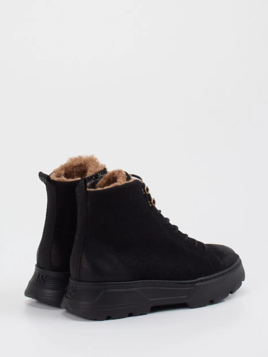 Stilvoll durch Wind und Wetter.Die Damen-Stiefelette von Paul Green kombiniert urbanes Design mit funktionaler Ausstattung. Für Spaziergänge in kalten Jahreszeiten bietet das Modell mit seinem samtig genarbten Nubukleder in tiefem Schwarz und einem flauschigen Textilfutter angenehme Wärme. Goldfarbene Metallösen, eine knöchelhohe Silhouette und die praktische Schnürung mit Innenreißverschluss runden das Design funktional ab. Eine robuste Gummisohle mit 3 cm Plateau und griffigem Profil sorgt für sicheren Halt auf winterlichen Untergründen. Der dezente Minimalismus macht diese Schnürboots zum Allrounder im „Gorpcore“-Trend. Paul Green steht für kompromisslosen Komfort mit stilistischer Klarheit.